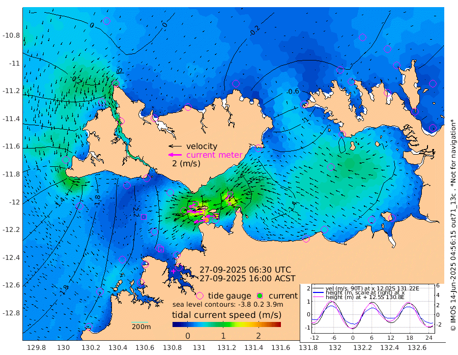 189cm/s -101T +4cm/s rms + 6cm/s 51T. Darwin_C1 52m 152cm/s -91T +4cm/s rms + 7cm/s -161T. Darwin_CW1 22m 86cm/s -105T +4cm/s rms + 8cm/s 61T. Darwin_CW2 34m 98cm/s -136T +3cm/s rms + 9cm/s 98T. Darwin_CW3 22m 157cm/s -90T +5cm/s rms + 7cm/s 88T. Darwin_C3 56m 109cm/s -115T +2cm/s rms + 9cm/s -126T. Darwin_CTbW 22m 8cm/s -167T +1cm/s rms + 1cm/s -47T. DARBGF 30m 15cm/s 164T +4cm/s rms + 3cm/s 80T. NRSDAR 19m 4cm Goodrich Bank -148cm Point Jenny -146cm Native Point -164cm Fish Reef -180cm Tapa Bay -71cm Point Fawcett (Offshore) -190cm Burge Point -157cm Munkunuwa -118cm Beagle A -198cm Parsons Bank -179cm Fenton Patches -206cm Hancox Shoal Area -212cm Nightcliff -232cm Darwin -202cm Charles Point Patches -191cm Glyde Point -185cm Chambers Bay -189cm Point Stuart -179cm Cape Hotham -168cm Christine Reef -206cm West Alligator Head -205cm East Field Island -165cm Two Hills Bay -155cm Camp Point -180cm Medina Inlet South -55cm South Barlow Point -28cm St. Asaph Bay 4cm Cape Van Dieman -11cm Snake Bay -6cm Cache Point -30cm Point Jahleel (Off) -86cm Cape Don -39cm Port Essington -38cm Smith Point - West -38cm NW Peacock Island -26cm North Of Jones Shoal -11cm Peacock Island -68cm Point David -43cm D'urville Point -70cm Copeland Island -68cm One Tree Point