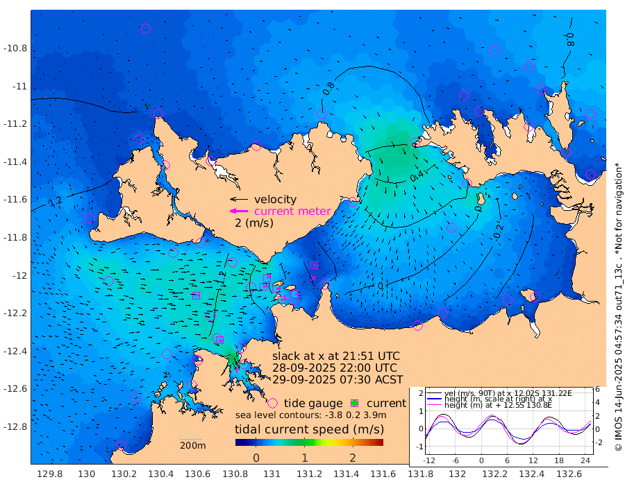 63cm/s 79T +4cm/s rms + 6cm/s 51T. Darwin_C1 52m 37cm/s 85T +4cm/s rms + 7cm/s -161T. Darwin_CW1 22m 40cm/s 75T +4cm/s rms + 8cm/s 61T. Darwin_CW2 34m 10cm/s 70T +3cm/s rms + 9cm/s 98T. Darwin_CW3 22m 47cm/s 88T +5cm/s rms + 7cm/s 88T. Darwin_C3 56m 43cm/s 62T +2cm/s rms + 9cm/s -126T. Darwin_CTbW 22m 38cm/s 90T +1cm/s rms + 1cm/s -47T. DARBGF 30m 36cm/s 121T +4cm/s rms + 3cm/s 80T. NRSDAR 19m 70cm Goodrich Bank 113cm Point Jenny 118cm Native Point 112cm Fish Reef 125cm Tapa Bay 97cm Point Fawcett (Offshore) 129cm Burge Point 127cm Munkunuwa 111cm Beagle A 125cm Parsons Bank 119cm Fenton Patches 111cm Hancox Shoal Area 117cm Nightcliff 129cm Darwin 132cm Charles Point Patches 61cm Glyde Point -13cm Chambers Bay -27cm Point Stuart 34cm Cape Hotham -7cm Christine Reef -40cm West Alligator Head -68cm East Field Island 6cm Two Hills Bay 19cm Camp Point 124cm Medina Inlet South 105cm South Barlow Point 88cm St. Asaph Bay 75cm Cape Van Dieman 83cm Snake Bay 67cm Cache Point 63cm Point Jahleel (Off) 54cm Cape Don 66cm Port Essington 65cm Smith Point - West 65cm NW Peacock Island 59cm North Of Jones Shoal 21cm Peacock Island 68cm Point David 68cm D'urville Point 63cm Copeland Island 63cm One Tree Point