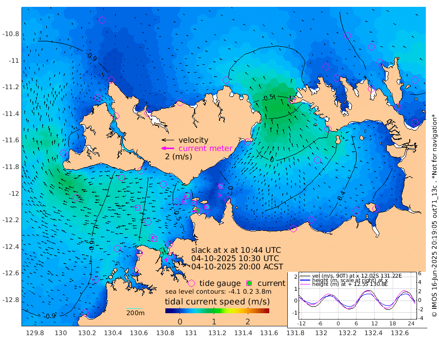 86cm/s -103T +4cm/s rms + 6cm/s 51T. Darwin_C1 52m 38cm/s -86T +4cm/s rms + 7cm/s -161T. Darwin_CW1 22m 32cm/s -107T +4cm/s rms + 8cm/s 61T. Darwin_CW2 34m 27cm/s -119T +3cm/s rms + 9cm/s 98T. Darwin_CW3 22m 29cm/s -93T +5cm/s rms + 7cm/s 88T. Darwin_C3 56m 56cm/s -116T +2cm/s rms + 9cm/s -126T. Darwin_CTbW 22m 46cm/s -88T +1cm/s rms + 1cm/s -47T. DARBGF 30m 47cm/s -57T +4cm/s rms + 3cm/s 80T. NRSDAR 19m -69cm Goodrich Bank -101cm Point Jenny -101cm Native Point -86cm Fish Reef -91cm Tapa Bay -95cm Point Fawcett (Offshore) -85cm Burge Point -87cm Munkunuwa -98cm Beagle A -75cm Parsons Bank -84cm Fenton Patches -63cm Hancox Shoal Area -74cm Nightcliff -64cm Darwin -78cm Charles Point Patches -24cm Glyde Point 25cm Chambers Bay 44cm Point Stuart -1cm Cape Hotham 11cm Christine Reef 56cm West Alligator Head 82cm East Field Island 10cm Two Hills Bay 7cm Camp Point -83cm Medina Inlet South -91cm South Barlow Point -85cm St. Asaph Bay -74cm Cape Van Dieman -71cm Snake Bay -71cm Cache Point -59cm Point Jahleel (Off) -49cm Cape Don -59cm Port Essington -63cm Smith Point - West -58cm NW Peacock Island -56cm North Of Jones Shoal -19cm Peacock Island -43cm Point David -61cm D'urville Point -39cm Copeland Island -44cm One Tree Point