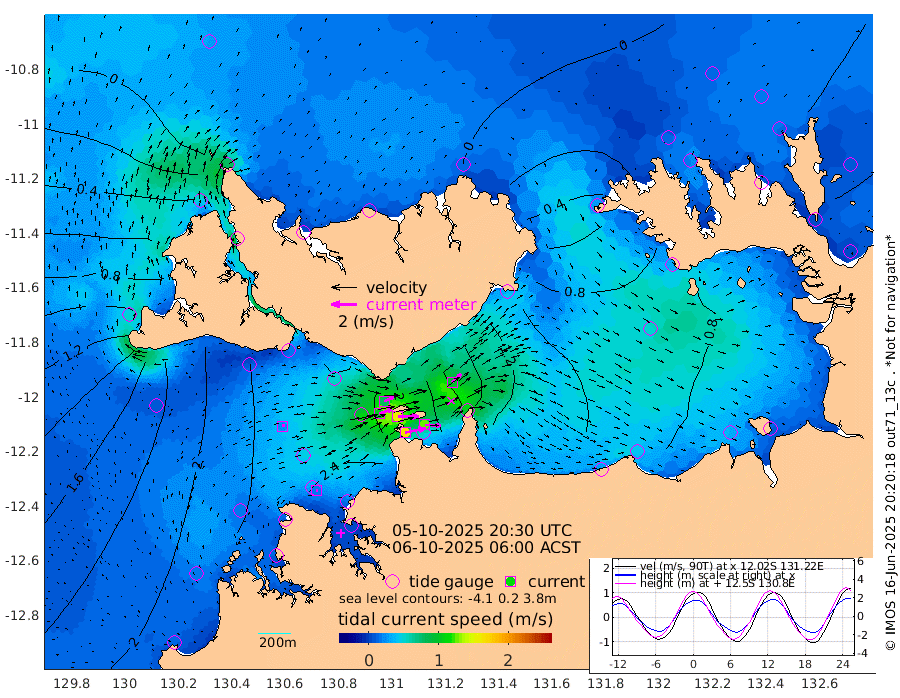 162cm/s 78T +4cm/s rms + 6cm/s 51T. Darwin_C1 52m 127cm/s 93T +4cm/s rms + 7cm/s -161T. Darwin_CW1 22m 104cm/s 72T +4cm/s rms + 8cm/s 61T. Darwin_CW2 34m 97cm/s 45T +3cm/s rms + 9cm/s 98T. Darwin_CW3 22m 161cm/s 89T +5cm/s rms + 7cm/s 88T. Darwin_C3 56m 80cm/s 66T +2cm/s rms + 9cm/s -126T. Darwin_CTbW 22m 23cm/s 71T +1cm/s rms + 1cm/s -47T. DARBGF 30m 16cm/s 91T +4cm/s rms + 3cm/s 80T. NRSDAR 19m -21cm Goodrich Bank 180cm Point Jenny 180cm Native Point 191cm Fish Reef 207cm Tapa Bay 73cm Point Fawcett (Offshore) 233cm Burge Point 197cm Munkunuwa 154cm Beagle A 219cm Parsons Bank 221cm Fenton Patches 216cm Hancox Shoal Area 238cm Nightcliff 248cm Darwin 217cm Charles Point Patches 178cm Glyde Point 140cm Chambers Bay 129cm Point Stuart 146cm Cape Hotham 130cm Christine Reef 139cm West Alligator Head 128cm East Field Island 112cm Two Hills Bay 124cm Camp Point 205cm Medina Inlet South 62cm South Barlow Point 28cm St. Asaph Bay -17cm Cape Van Dieman -9cm Snake Bay -16cm Cache Point 5cm Point Jahleel (Off) 57cm Cape Don 8cm Port Essington 7cm Smith Point - West 2cm NW Peacock Island -12cm North Of Jones Shoal -3cm Peacock Island 21cm Point David 7cm D'urville Point 22cm Copeland Island 20cm One Tree Point