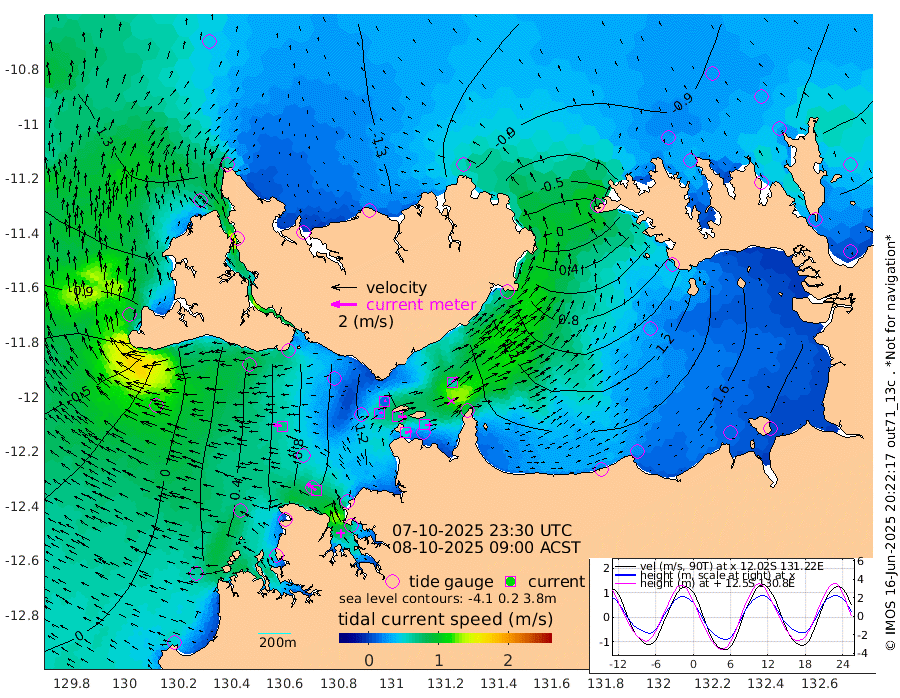 50cm/s 80T +4cm/s rms + 6cm/s 51T. Darwin_C1 52m 53cm/s 91T +4cm/s rms + 7cm/s -161T. Darwin_CW1 22m 28cm/s 65T +4cm/s rms + 8cm/s 61T. Darwin_CW2 34m 58cm/s 44T +3cm/s rms + 9cm/s 98T. Darwin_CW3 22m 68cm/s 91T +5cm/s rms + 7cm/s 88T. Darwin_C3 56m 16cm/s 67T +2cm/s rms + 9cm/s -126T. Darwin_CTbW 22m 69cm/s -82T +1cm/s rms + 1cm/s -47T. DARBGF 30m 86cm/s -53T +4cm/s rms + 3cm/s 80T. NRSDAR 19m -121cm Goodrich Bank -29cm Point Jenny -30cm Native Point -18cm Fish Reef -2cm Tapa Bay -107cm Point Fawcett (Offshore) 22cm Burge Point -11cm Munkunuwa -57cm Beagle A 34cm Parsons Bank 11cm Fenton Patches 50cm Hancox Shoal Area 41cm Nightcliff 60cm Darwin 16cm Charles Point Patches 91cm Glyde Point 157cm Chambers Bay 179cm Point Stuart 103cm Cape Hotham 139cm Christine Reef 207cm West Alligator Head 240cm East Field Island 111cm Two Hills Bay 111cm Camp Point 0cm Medina Inlet South -105cm South Barlow Point -123cm St. Asaph Bay -126cm Cape Van Dieman -117cm Snake Bay -119cm Cache Point -86cm Point Jahleel (Off) -20cm Cape Don -76cm Port Essington -83cm Smith Point - West -77cm NW Peacock Island -93cm North Of Jones Shoal -30cm Peacock Island -33cm Point David -76cm D'urville Point -26cm Copeland Island -38cm One Tree Point