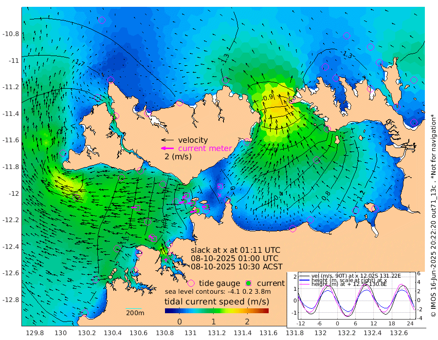 120cm/s -102T +4cm/s rms + 6cm/s 51T. Darwin_C1 52m 77cm/s -88T +4cm/s rms + 7cm/s -161T. Darwin_CW1 22m 85cm/s -108T +4cm/s rms + 8cm/s 61T. Darwin_CW2 34m 27cm/s -114T +3cm/s rms + 9cm/s 98T. Darwin_CW3 22m 87cm/s -94T +5cm/s rms + 7cm/s 88T. Darwin_C3 56m 77cm/s -116T +2cm/s rms + 9cm/s -126T. Darwin_CTbW 22m 96cm/s -89T +1cm/s rms + 1cm/s -47T. DARBGF 30m 94cm/s -57T +4cm/s rms + 3cm/s 80T. NRSDAR 19m -123cm Goodrich Bank -217cm Point Jenny -218cm Native Point -217cm Fish Reef -217cm Tapa Bay -200cm Point Fawcett (Offshore) -211cm Burge Point -217cm Munkunuwa -222cm Beagle A -195cm Parsons Bank -213cm Fenton Patches -172cm Hancox Shoal Area -194cm Nightcliff -189cm Darwin -208cm Charles Point Patches -81cm Glyde Point 39cm Chambers Bay 69cm Point Stuart -38cm Cape Hotham 28cm Christine Reef 93cm West Alligator Head 146cm East Field Island 6cm Two Hills Bay 1cm Camp Point -210cm Medina Inlet South -188cm South Barlow Point -172cm St. Asaph Bay -134cm Cape Van Dieman -133cm Snake Bay -128cm Cache Point -113cm Point Jahleel (Off) -90cm Cape Don -111cm Port Essington -118cm Smith Point - West -108cm NW Peacock Island -105cm North Of Jones Shoal -37cm Peacock Island -85cm Point David -115cm D'urville Point -80cm Copeland Island -85cm One Tree Point