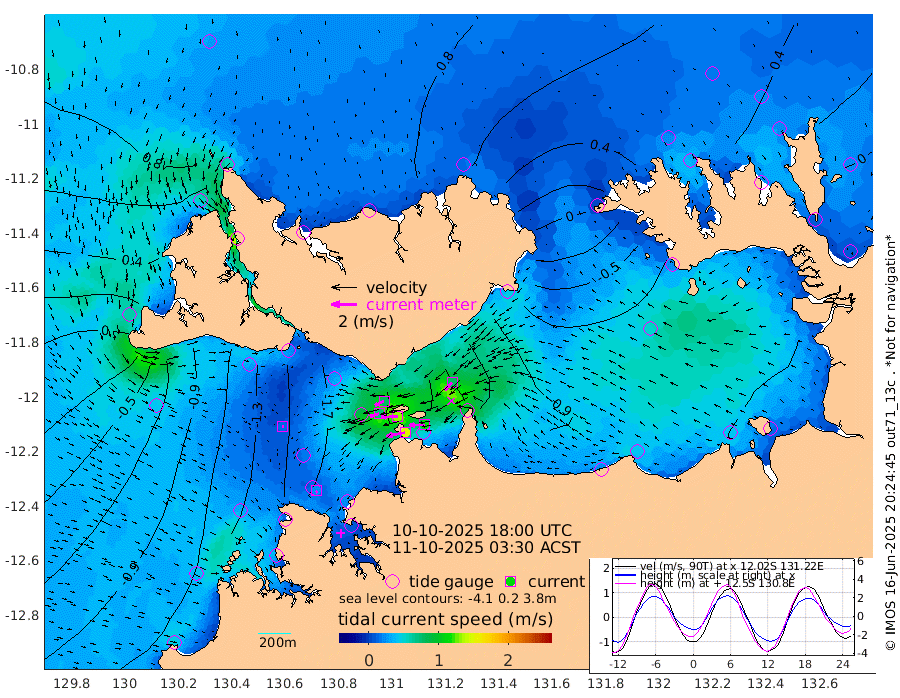 148cm/s -101T +4cm/s rms + 6cm/s 51T. Darwin_C1 52m 117cm/s -91T +4cm/s rms + 7cm/s -161T. Darwin_CW1 22m 74cm/s -107T +4cm/s rms + 8cm/s 61T. Darwin_CW2 34m 80cm/s -135T +3cm/s rms + 9cm/s 98T. Darwin_CW3 22m 131cm/s -91T +5cm/s rms + 7cm/s 88T. Darwin_C3 56m 77cm/s -115T +2cm/s rms + 9cm/s -126T. Darwin_CTbW 22m 14cm/s 122T +1cm/s rms + 1cm/s -47T. DARBGF 30m 22cm/s 154T +4cm/s rms + 3cm/s 80T. NRSDAR 19m 96cm Goodrich Bank -75cm Point Jenny -73cm Native Point -87cm Fish Reef -104cm Tapa Bay 27cm Point Fawcett (Offshore) -123cm Burge Point -108cm Munkunuwa -35cm Beagle A -139cm Parsons Bank -107cm Fenton Patches -140cm Hancox Shoal Area -138cm Nightcliff -151cm Darwin -107cm Charles Point Patches -123cm Glyde Point -133cm Chambers Bay -142cm Point Stuart -117cm Cape Hotham -120cm Christine Reef -162cm West Alligator Head -159cm East Field Island -104cm Two Hills Bay -91cm Camp Point -101cm Medina Inlet South 35cm South Barlow Point 65cm St. Asaph Bay 94cm Cape Van Dieman 87cm Snake Bay 89cm Cache Point 57cm Point Jahleel (Off) -7cm Cape Don 46cm Port Essington 45cm Smith Point - West 46cm NW Peacock Island 70cm North Of Jones Shoal 22cm Peacock Island 8cm Point David 40cm D'urville Point 1cm Copeland Island 16cm One Tree Point