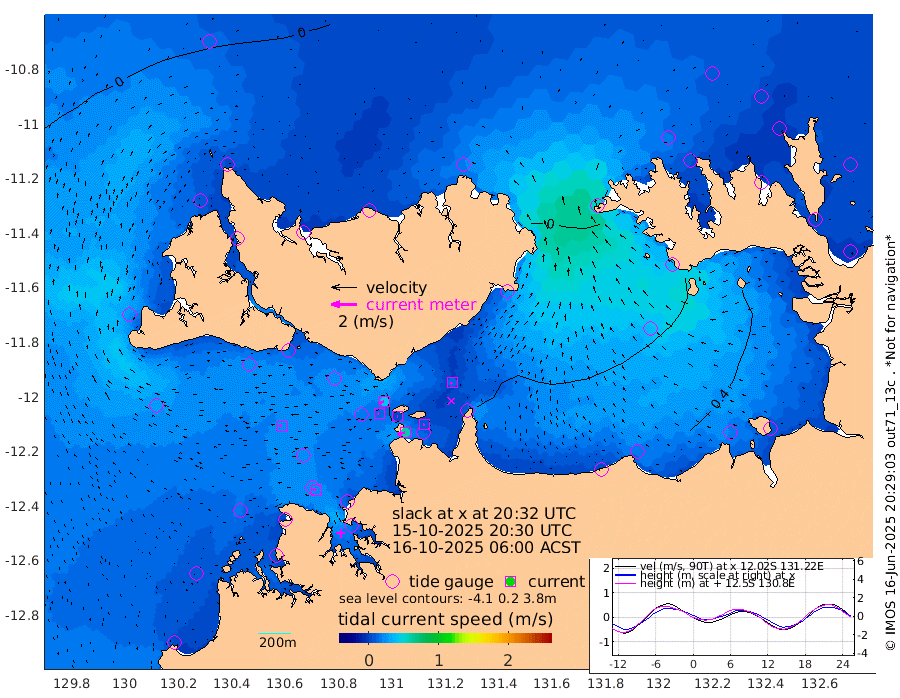 62cm/s -101T +4cm/s rms + 6cm/s 51T. Darwin_C1 52m 11cm/s -87T +4cm/s rms + 7cm/s -161T. Darwin_CW1 22m 14cm/s -107T +4cm/s rms + 8cm/s 61T. Darwin_CW2 34m 14cm/s -122T +3cm/s rms + 9cm/s 98T. Darwin_CW3 22m 4cm/s -98T +5cm/s rms + 7cm/s 88T. Darwin_C3 56m 40cm/s -116T +2cm/s rms + 9cm/s -126T. Darwin_CTbW 22m 23cm/s -84T +1cm/s rms + 1cm/s -47T. DARBGF 30m 24cm/s -60T +4cm/s rms + 3cm/s 80T. NRSDAR 19m 10cm Goodrich Bank -2cm Point Jenny 0cm Native Point -9cm Fish Reef 0cm Tapa Bay -3cm Point Fawcett (Offshore) 8cm Burge Point -8cm Munkunuwa -2cm Beagle A -9cm Parsons Bank 2cm Fenton Patches -2cm Hancox Shoal Area 0cm Nightcliff 5cm Darwin 7cm Charles Point Patches 13cm Glyde Point 24cm Chambers Bay 22cm Point Stuart 10cm Cape Hotham 25cm Christine Reef 25cm West Alligator Head 39cm East Field Island 9cm Two Hills Bay 31cm Camp Point -1cm Medina Inlet South -3cm South Barlow Point 3cm St. Asaph Bay 7cm Cape Van Dieman 5cm Snake Bay 5cm Cache Point 2cm Point Jahleel (Off) 0cm Cape Don -5cm Port Essington -12cm Smith Point - West -10cm NW Peacock Island -3cm North Of Jones Shoal -2cm Peacock Island -12cm Point David -15cm D'urville Point -15cm Copeland Island -11cm One Tree Point