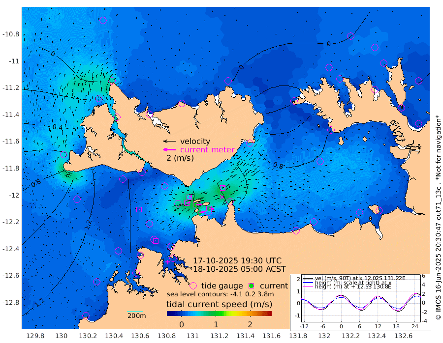 89cm/s 78T +4cm/s rms + 6cm/s 51T. Darwin_C1 52m 78cm/s 93T +4cm/s rms + 7cm/s -161T. Darwin_CW1 22m 63cm/s 72T +4cm/s rms + 8cm/s 61T. Darwin_CW2 34m 57cm/s 44T +3cm/s rms + 9cm/s 98T. Darwin_CW3 22m 98cm/s 89T +5cm/s rms + 7cm/s 88T. Darwin_C3 56m 47cm/s 65T +2cm/s rms + 9cm/s -126T. Darwin_CTbW 22m 9cm/s 52T +1cm/s rms + 1cm/s -47T. DARBGF 30m 4cm/s 52T +4cm/s rms + 3cm/s 80T. NRSDAR 19m -14cm Goodrich Bank 125cm Point Jenny 125cm Native Point 136cm Fish Reef 142cm Tapa Bay 51cm Point Fawcett (Offshore) 163cm Burge Point 133cm Munkunuwa 109cm Beagle A 146cm Parsons Bank 155cm Fenton Patches 144cm Hancox Shoal Area 152cm Nightcliff 169cm Darwin 149cm Charles Point Patches 135cm Glyde Point 118cm Chambers Bay 120cm Point Stuart 115cm Cape Hotham 106cm Christine Reef 131cm West Alligator Head 131cm East Field Island 96cm Two Hills Bay 103cm Camp Point 139cm Medina Inlet South 35cm South Barlow Point 16cm St. Asaph Bay -12cm Cape Van Dieman -11cm Snake Bay -9cm Cache Point 4cm Point Jahleel (Off) 41cm Cape Don 4cm Port Essington -1cm Smith Point - West -4cm NW Peacock Island -16cm North Of Jones Shoal -5cm Peacock Island 8cm Point David -2cm D'urville Point 8cm Copeland Island 6cm One Tree Point