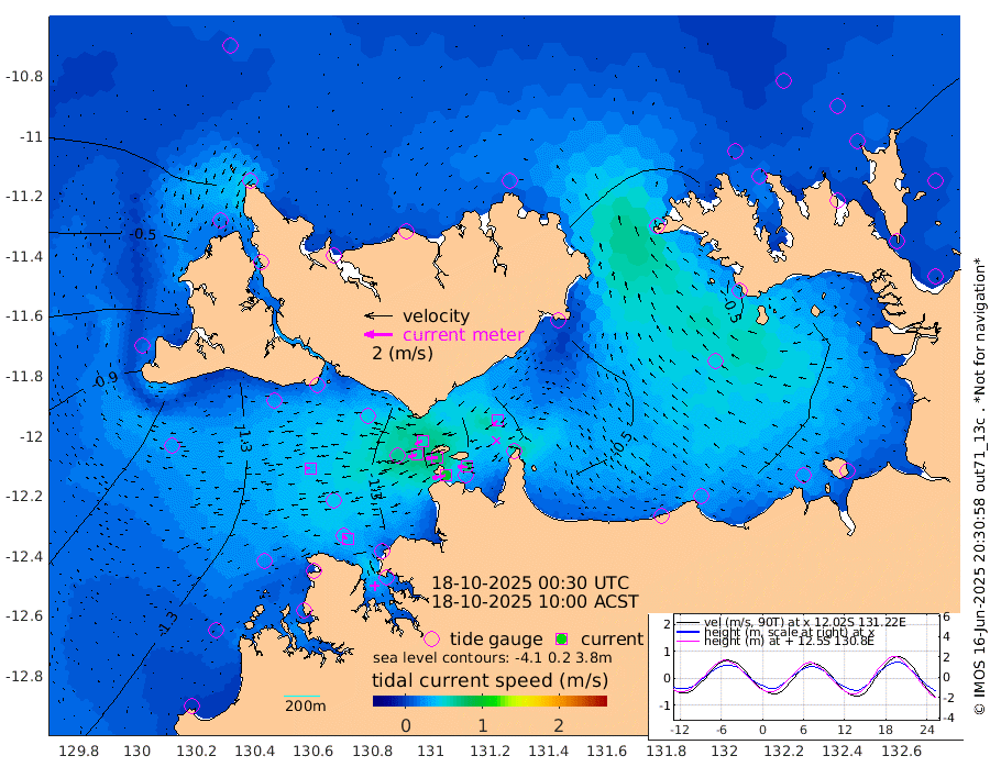 96cm/s -102T +4cm/s rms + 6cm/s 51T. Darwin_C1 52m 69cm/s -89T +4cm/s rms + 7cm/s -161T. Darwin_CW1 22m 63cm/s -107T +4cm/s rms + 8cm/s 61T. Darwin_CW2 34m 43cm/s -135T +3cm/s rms + 9cm/s 98T. Darwin_CW3 22m 81cm/s -91T +5cm/s rms + 7cm/s 88T. Darwin_C3 56m 56cm/s -115T +2cm/s rms + 9cm/s -126T. Darwin_CTbW 22m 36cm/s -93T +1cm/s rms + 1cm/s -47T. DARBGF 30m 33cm/s -63T +4cm/s rms + 3cm/s 80T. NRSDAR 19m -2cm Goodrich Bank -141cm Point Jenny -138cm Native Point -157cm Fish Reef -149cm Tapa Bay -79cm Point Fawcett (Offshore) -166cm Burge Point -143cm Munkunuwa -137cm Beagle A -152cm Parsons Bank -169cm Fenton Patches -145cm Hancox Shoal Area -161cm Nightcliff -164cm Darwin -150cm Charles Point Patches -117cm Glyde Point -82cm Chambers Bay -77cm Point Stuart -98cm Cape Hotham -74cm Christine Reef -81cm West Alligator Head -68cm East Field Island -74cm Two Hills Bay -68cm Camp Point -147cm Medina Inlet South -62cm South Barlow Point -42cm St. Asaph Bay -7cm Cape Van Dieman -7cm Snake Bay -13cm Cache Point -21cm Point Jahleel (Off) -48cm Cape Don -23cm Port Essington -27cm Smith Point - West -20cm NW Peacock Island -9cm North Of Jones Shoal -4cm Peacock Island -22cm Point David -26cm D'urville Point -24cm Copeland Island -23cm One Tree Point