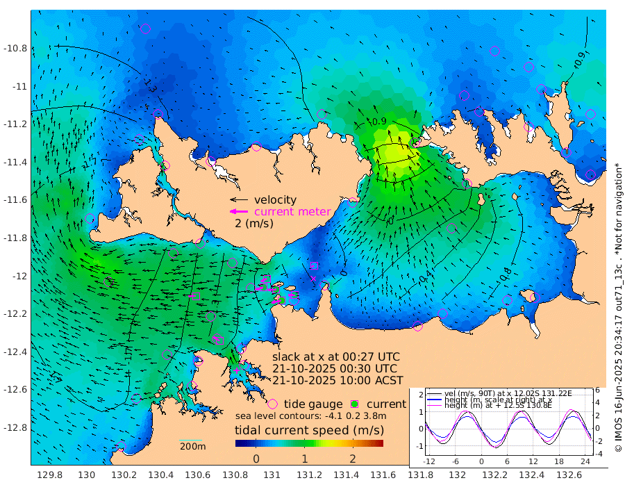 109cm/s -102T +4cm/s rms + 6cm/s 51T. Darwin_C1 52m 76cm/s -89T +4cm/s rms + 7cm/s -161T. Darwin_CW1 22m 84cm/s -108T +4cm/s rms + 8cm/s 61T. Darwin_CW2 34m 27cm/s -115T +3cm/s rms + 9cm/s 98T. Darwin_CW3 22m 94cm/s -93T +5cm/s rms + 7cm/s 88T. Darwin_C3 56m 71cm/s -115T +2cm/s rms + 9cm/s -126T. Darwin_CTbW 22m 83cm/s -89T +1cm/s rms + 1cm/s -47T. DARBGF 30m 76cm/s -58T +4cm/s rms + 3cm/s 80T. NRSDAR 19m -95cm Goodrich Bank -184cm Point Jenny -184cm Native Point -188cm Fish Reef -186cm Tapa Bay -171cm Point Fawcett (Offshore) -180cm Burge Point -184cm Munkunuwa -186cm Beagle A -166cm Parsons Bank -182cm Fenton Patches -152cm Hancox Shoal Area -183cm Nightcliff -170cm Darwin -182cm Charles Point Patches -78cm Glyde Point 12cm Chambers Bay 43cm Point Stuart -44cm Cape Hotham 10cm Christine Reef 59cm West Alligator Head 101cm East Field Island -8cm Two Hills Bay -10cm Camp Point -185cm Medina Inlet South -157cm South Barlow Point -143cm St. Asaph Bay -104cm Cape Van Dieman -108cm Snake Bay -101cm Cache Point -91cm Point Jahleel (Off) -78cm Cape Don -87cm Port Essington -94cm Smith Point - West -84cm NW Peacock Island -92cm North Of Jones Shoal -32cm Peacock Island -65cm Point David -89cm D'urville Point -61cm Copeland Island -71cm One Tree Point