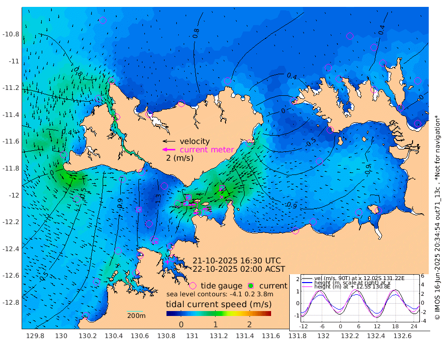 89cm/s -100T +4cm/s rms + 6cm/s 51T. Darwin_C1 52m 87cm/s -92T +4cm/s rms + 7cm/s -161T. Darwin_CW1 22m 48cm/s -106T +4cm/s rms + 8cm/s 61T. Darwin_CW2 34m 66cm/s -136T +3cm/s rms + 9cm/s 98T. Darwin_CW3 22m 103cm/s -91T +5cm/s rms + 7cm/s 88T. Darwin_C3 56m 32cm/s -116T +2cm/s rms + 9cm/s -126T. Darwin_CTbW 22m 26cm/s 107T +1cm/s rms + 1cm/s -47T. DARBGF 30m 33cm/s 138T +4cm/s rms + 3cm/s 80T. NRSDAR 19m 81cm Goodrich Bank -47cm Point Jenny -44cm Native Point -65cm Fish Reef -76cm Tapa Bay 27cm Point Fawcett (Offshore) -87cm Burge Point -72cm Munkunuwa -13cm Beagle A -100cm Parsons Bank -74cm Fenton Patches -106cm Hancox Shoal Area -94cm Nightcliff -121cm Darwin -90cm Charles Point Patches -109cm Glyde Point -128cm Chambers Bay -142cm Point Stuart -107cm Cape Hotham -105cm Christine Reef -160cm West Alligator Head -167cm East Field Island -99cm Two Hills Bay -91cm Camp Point -75cm Medina Inlet South 41cm South Barlow Point 60cm St. Asaph Bay 81cm Cape Van Dieman 77cm Snake Bay 75cm Cache Point 49cm Point Jahleel (Off) -5cm Cape Don 38cm Port Essington 42cm Smith Point - West 42cm NW Peacock Island 59cm North Of Jones Shoal 19cm Peacock Island 9cm Point David 39cm D'urville Point 3cm Copeland Island 14cm One Tree Point