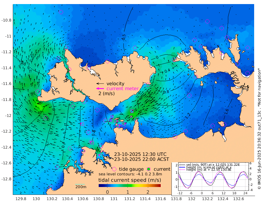 65cm/s 81T +4cm/s rms + 6cm/s 51T. Darwin_C1 52m 75cm/s 90T +4cm/s rms + 7cm/s -161T. Darwin_CW1 22m 24cm/s 71T +4cm/s rms + 8cm/s 61T. Darwin_CW2 34m 52cm/s 44T +3cm/s rms + 9cm/s 98T. Darwin_CW3 22m 68cm/s 92T +5cm/s rms + 7cm/s 88T. Darwin_C3 56m 26cm/s 68T +2cm/s rms + 9cm/s -126T. Darwin_CTbW 22m 46cm/s -80T +1cm/s rms + 1cm/s -47T. DARBGF 30m 63cm/s -52T +4cm/s rms + 3cm/s 80T. NRSDAR 19m -45cm Goodrich Bank 22cm Point Jenny 18cm Native Point 38cm Fish Reef 39cm Tapa Bay -18cm Point Fawcett (Offshore) 52cm Burge Point 21cm Munkunuwa 4cm Beagle A 54cm Parsons Bank 45cm Fenton Patches 70cm Hancox Shoal Area 62cm Nightcliff 81cm Darwin 56cm Charles Point Patches 109cm Glyde Point 166cm Chambers Bay 191cm Point Stuart 126cm Cape Hotham 149cm Christine Reef 217cm West Alligator Head 244cm East Field Island 138cm Two Hills Bay 122cm Camp Point 40cm Medina Inlet South -39cm South Barlow Point -42cm St. Asaph Bay -51cm Cape Van Dieman -47cm Snake Bay -36cm Cache Point -16cm Point Jahleel (Off) 28cm Cape Don -16cm Port Essington -20cm Smith Point - West -18cm NW Peacock Island -23cm North Of Jones Shoal -8cm Peacock Island 1cm Point David -20cm D'urville Point 5cm Copeland Island 4cm One Tree Point