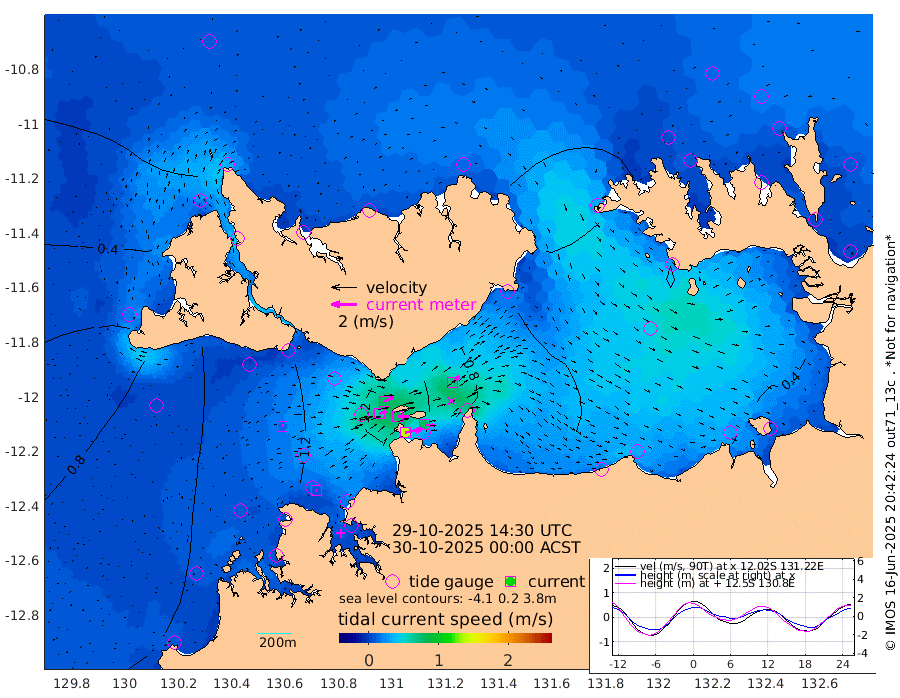 139cm/s 78T +4cm/s rms + 6cm/s 51T. Darwin_C1 52m 78cm/s 93T +4cm/s rms + 7cm/s -161T. Darwin_CW1 22m 59cm/s 71T +4cm/s rms + 8cm/s 61T. Darwin_CW2 34m 72cm/s 48T +3cm/s rms + 9cm/s 98T. Darwin_CW3 22m 81cm/s 90T +5cm/s rms + 7cm/s 88T. Darwin_C3 56m 81cm/s 66T +2cm/s rms + 9cm/s -126T. Darwin_CTbW 22m 13cm/s 71T +1cm/s rms + 1cm/s -47T. DARBGF 30m 7cm/s 70T +4cm/s rms + 3cm/s 80T. NRSDAR 19m 8cm Goodrich Bank 105cm Point Jenny 104cm Native Point 101cm Fish Reef 111cm Tapa Bay 54cm Point Fawcett (Offshore) 117cm Burge Point 97cm Munkunuwa 93cm Beagle A 109cm Parsons Bank 118cm Fenton Patches 114cm Hancox Shoal Area 130cm Nightcliff 120cm Darwin 108cm Charles Point Patches 97cm Glyde Point 96cm Chambers Bay 87cm Point Stuart 83cm Cape Hotham 100cm Christine Reef 96cm West Alligator Head 93cm East Field Island 78cm Two Hills Bay 75cm Camp Point 106cm Medina Inlet South 44cm South Barlow Point 32cm St. Asaph Bay 8cm Cape Van Dieman 9cm Snake Bay 13cm Cache Point 21cm Point Jahleel (Off) 47cm Cape Don 17cm Port Essington 23cm Smith Point - West 17cm NW Peacock Island 13cm North Of Jones Shoal 4cm Peacock Island 11cm Point David 19cm D'urville Point 12cm Copeland Island 16cm One Tree Point