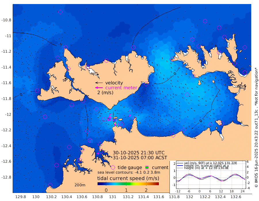 61cm/s -101T +4cm/s rms + 6cm/s 51T. Darwin_C1 52m 15cm/s -88T +4cm/s rms + 7cm/s -161T. Darwin_CW1 22m 21cm/s -110T +4cm/s rms + 8cm/s 61T. Darwin_CW2 34m 26cm/s -131T +3cm/s rms + 9cm/s 98T. Darwin_CW3 22m 15cm/s -92T +5cm/s rms + 7cm/s 88T. Darwin_C3 56m 41cm/s -116T +2cm/s rms + 9cm/s -126T. Darwin_CTbW 22m 13cm/s -90T +1cm/s rms + 1cm/s -47T. DARBGF 30m 13cm/s -66T +4cm/s rms + 3cm/s 80T. NRSDAR 19m 28cm Goodrich Bank -30cm Point Jenny -28cm Native Point -28cm Fish Reef -32cm Tapa Bay 0cm Point Fawcett (Offshore) -32cm Burge Point -30cm Munkunuwa -26cm Beagle A -35cm Parsons Bank -39cm Fenton Patches -38cm Hancox Shoal Area -52cm Nightcliff -28cm Darwin -15cm Charles Point Patches -23cm Glyde Point -30cm Chambers Bay -23cm Point Stuart -25cm Cape Hotham -28cm Christine Reef -28cm West Alligator Head -23cm East Field Island -20cm Two Hills Bay -10cm Camp Point -24cm Medina Inlet South 5cm South Barlow Point 12cm St. Asaph Bay 25cm Cape Van Dieman 24cm Snake Bay 23cm Cache Point 14cm Point Jahleel (Off) 2cm Cape Don 18cm Port Essington 9cm Smith Point - West 12cm NW Peacock Island 18cm North Of Jones Shoal 5cm Peacock Island 6cm Point David 9cm D'urville Point 3cm Copeland Island 9cm One Tree Point