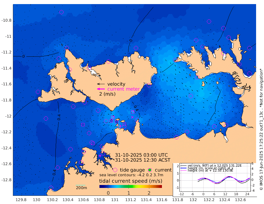 61cm/s 78T +4cm/s rms + 6cm/s 51T. Darwin_C1 52m 12cm/s 86T +4cm/s rms + 7cm/s -161T. Darwin_CW1 22m 10cm/s 73T +4cm/s rms + 8cm/s 61T. Darwin_CW2 34m 31cm/s 46T +3cm/s rms + 9cm/s 98T. Darwin_CW3 22m 6cm/s 90T +5cm/s rms + 7cm/s 88T. Darwin_C3 56m 37cm/s 63T +2cm/s rms + 9cm/s -126T. Darwin_CTbW 22m 5cm/s 102T +1cm/s rms + 1cm/s -47T. DARBGF 30m 5cm/s 105T +4cm/s rms + 3cm/s 80T. NRSDAR 19m -14cm Goodrich Bank 24cm Point Jenny 23cm Native Point 15cm Fish Reef 31cm Tapa Bay -1cm Point Fawcett (Offshore) 18cm Burge Point 17cm Munkunuwa 9cm Beagle A 34cm Parsons Bank 21cm Fenton Patches 40cm Hancox Shoal Area 34cm Nightcliff 27cm Darwin 22cm Charles Point Patches 26cm Glyde Point 32cm Chambers Bay 26cm Point Stuart 27cm Cape Hotham 27cm Christine Reef 26cm West Alligator Head 20cm East Field Island 25cm Two Hills Bay 20cm Camp Point 16cm Medina Inlet South -4cm South Barlow Point -11cm St. Asaph Bay -11cm Cape Van Dieman -9cm Snake Bay -9cm Cache Point -1cm Point Jahleel (Off) 15cm Cape Don 9cm Port Essington 14cm Smith Point - West 17cm NW Peacock Island 1cm North Of Jones Shoal 3cm Peacock Island 43cm Point David 22cm D'urville Point 45cm Copeland Island 31cm One Tree Point