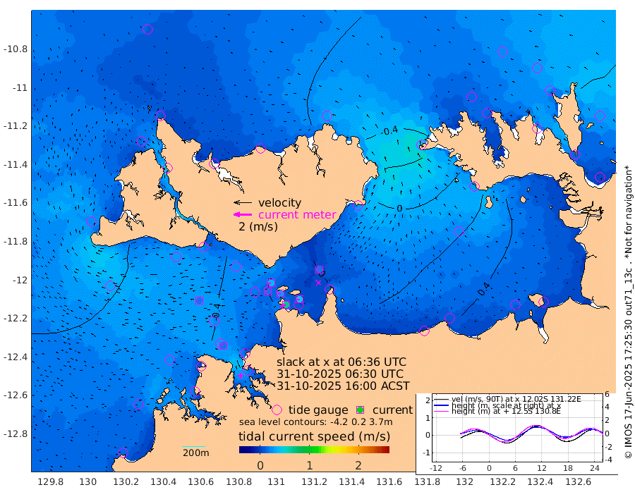 64cm/s -103T +4cm/s rms + 6cm/s 51T. Darwin_C1 52m 42cm/s -90T +4cm/s rms + 7cm/s -161T. Darwin_CW1 22m 20cm/s -106T +4cm/s rms + 8cm/s 61T. Darwin_CW2 34m 19cm/s -109T +3cm/s rms + 9cm/s 98T. Darwin_CW3 22m 28cm/s -91T +5cm/s rms + 7cm/s 88T. Darwin_C3 56m 35cm/s -116T +2cm/s rms + 9cm/s -126T. Darwin_CTbW 22m 20cm/s -90T +1cm/s rms + 1cm/s -47T. DARBGF 30m 17cm/s -63T +4cm/s rms + 3cm/s 80T. NRSDAR 19m -62cm Goodrich Bank -49cm Point Jenny -51cm Native Point -44cm Fish Reef -42cm Tapa Bay -61cm Point Fawcett (Offshore) -45cm Burge Point -52cm Munkunuwa -50cm Beagle A -43cm Parsons Bank -37cm Fenton Patches -27cm Hancox Shoal Area -26cm Nightcliff -35cm Darwin -45cm Charles Point Patches -5cm Glyde Point 39cm Chambers Bay 40cm Point Stuart 11cm Cape Hotham 19cm Christine Reef 49cm West Alligator Head 67cm East Field Island 13cm Two Hills Bay 14cm Camp Point -49cm Medina Inlet South -69cm South Barlow Point -64cm St. Asaph Bay -64cm Cape Van Dieman -64cm Snake Bay -59cm Cache Point -49cm Point Jahleel (Off) -35cm Cape Don -49cm Port Essington -49cm Smith Point - West -46cm NW Peacock Island -48cm North Of Jones Shoal -16cm Peacock Island -27cm Point David -46cm D'urville Point -22cm Copeland Island -32cm One Tree Point