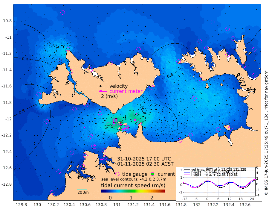 98cm/s 77T +4cm/s rms + 6cm/s 51T. Darwin_C1 52m 61cm/s 91T +4cm/s rms + 7cm/s -161T. Darwin_CW1 22m 53cm/s 72T +4cm/s rms + 8cm/s 61T. Darwin_CW2 34m 53cm/s 49T +3cm/s rms + 9cm/s 98T. Darwin_CW3 22m 71cm/s 89T +5cm/s rms + 7cm/s 88T. Darwin_C3 56m 59cm/s 65T +2cm/s rms + 9cm/s -126T. Darwin_CTbW 22m 18cm/s 79T +1cm/s rms + 1cm/s -47T. DARBGF 30m 13cm/s 101T +4cm/s rms + 3cm/s 80T. NRSDAR 19m 6cm Goodrich Bank 116cm Point Jenny 116cm Native Point 115cm Fish Reef 122cm Tapa Bay 61cm Point Fawcett (Offshore) 134cm Burge Point 108cm Munkunuwa 107cm Beagle A 117cm Parsons Bank 133cm Fenton Patches 118cm Hancox Shoal Area 140cm Nightcliff 131cm Darwin 119cm Charles Point Patches 102cm Glyde Point 92cm Chambers Bay 80cm Point Stuart 84cm Cape Hotham 90cm Christine Reef 87cm West Alligator Head 83cm East Field Island 72cm Two Hills Bay 77cm Camp Point 117cm Medina Inlet South 48cm South Barlow Point 34cm St. Asaph Bay 8cm Cape Van Dieman 10cm Snake Bay 12cm Cache Point 19cm Point Jahleel (Off) 45cm Cape Don 15cm Port Essington 17cm Smith Point - West 12cm NW Peacock Island 8cm North Of Jones Shoal 3cm Peacock Island 11cm Point David 14cm D'urville Point 11cm Copeland Island 14cm One Tree Point
