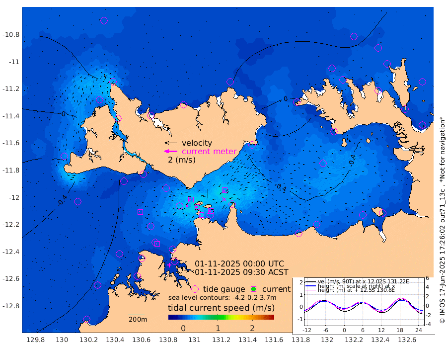 41cm/s -102T +4cm/s rms + 6cm/s 51T. Darwin_C1 52m 26cm/s -87T +4cm/s rms + 7cm/s -161T. Darwin_CW1 22m 35cm/s -109T +4cm/s rms + 8cm/s 61T. Darwin_CW2 34m 27cm/s -139T +3cm/s rms + 9cm/s 98T. Darwin_CW3 22m 45cm/s -90T +5cm/s rms + 7cm/s 88T. Darwin_C3 56m 26cm/s -114T +2cm/s rms + 9cm/s -126T. Darwin_CTbW 22m 10cm/s -104T +1cm/s rms + 1cm/s -47T. DARBGF 30m 8cm/s -77T +4cm/s rms + 3cm/s 80T. NRSDAR 19m 26cm Goodrich Bank -69cm Point Jenny -68cm Native Point -75cm Fish Reef -78cm Tapa Bay -20cm Point Fawcett (Offshore) -88cm Burge Point -68cm Munkunuwa -67cm Beagle A -76cm Parsons Bank -94cm Fenton Patches -82cm Hancox Shoal Area -104cm Nightcliff -88cm Darwin -71cm Charles Point Patches -74cm Glyde Point -78cm Chambers Bay -71cm Point Stuart -68cm Cape Hotham -69cm Christine Reef -80cm West Alligator Head -84cm East Field Island -55cm Two Hills Bay -57cm Camp Point -72cm Medina Inlet South -8cm South Barlow Point 1cm St. Asaph Bay 25cm Cape Van Dieman 23cm Snake Bay 21cm Cache Point 10cm Point Jahleel (Off) -11cm Cape Don 18cm Port Essington 14cm Smith Point - West 18cm NW Peacock Island 20cm North Of Jones Shoal 7cm Peacock Island 13cm Point David 16cm D'urville Point 11cm Copeland Island 13cm One Tree Point