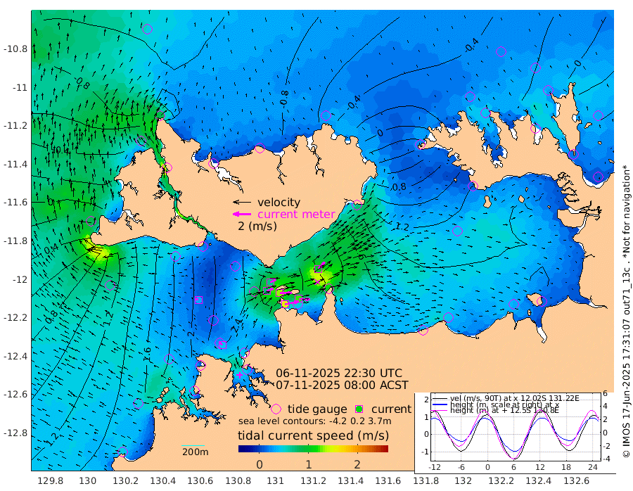 152cm/s 79T +4cm/s rms + 6cm/s 51T. Darwin_C1 52m 123cm/s 92T +4cm/s rms + 7cm/s -161T. Darwin_CW1 22m 75cm/s 70T +4cm/s rms + 8cm/s 61T. Darwin_CW2 34m 104cm/s 43T +3cm/s rms + 9cm/s 98T. Darwin_CW3 22m 132cm/s 90T +5cm/s rms + 7cm/s 88T. Darwin_C3 56m 69cm/s 65T +2cm/s rms + 9cm/s -126T. Darwin_CTbW 22m 31cm/s -74T +1cm/s rms + 1cm/s -47T. DARBGF 30m 43cm/s -46T +4cm/s rms + 3cm/s 80T. NRSDAR 19m -96cm Goodrich Bank 78cm Point Jenny 78cm Native Point 96cm Fish Reef 114cm Tapa Bay -36cm Point Fawcett (Offshore) 142cm Burge Point 103cm Munkunuwa 44cm Beagle A 156cm Parsons Bank 129cm Fenton Patches 160cm Hancox Shoal Area 153cm Nightcliff 180cm Darwin 132cm Charles Point Patches 161cm Glyde Point 167cm Chambers Bay 187cm Point Stuart 153cm Cape Hotham 151cm Christine Reef 207cm West Alligator Head 215cm East Field Island 138cm Two Hills Bay 135cm Camp Point 111cm Medina Inlet South -37cm South Barlow Point -74cm St. Asaph Bay -94cm Cape Van Dieman -82cm Snake Bay -89cm Cache Point -52cm Point Jahleel (Off) 25cm Cape Don -31cm Port Essington -35cm Smith Point - West -30cm NW Peacock Island -64cm North Of Jones Shoal -18cm Peacock Island 29cm Point David -22cm D'urville Point 36cm Copeland Island 15cm One Tree Point