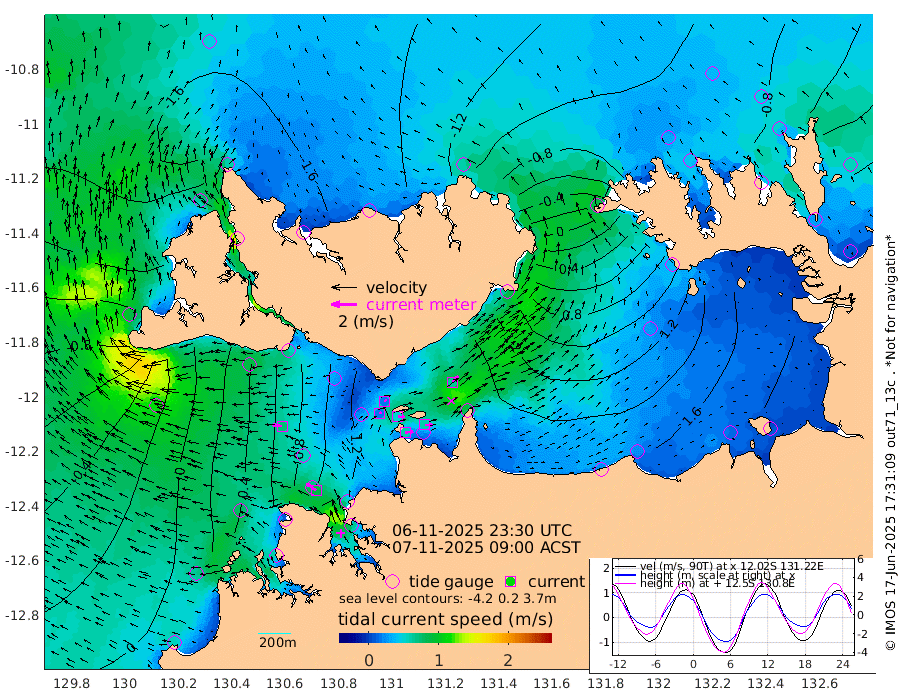 61cm/s 81T +4cm/s rms + 6cm/s 51T. Darwin_C1 52m 61cm/s 91T +4cm/s rms + 7cm/s -161T. Darwin_CW1 22m 18cm/s 58T +4cm/s rms + 8cm/s 61T. Darwin_CW2 34m 65cm/s 43T +3cm/s rms + 9cm/s 98T. Darwin_CW3 22m 50cm/s 92T +5cm/s rms + 7cm/s 88T. Darwin_C3 56m 21cm/s 64T +2cm/s rms + 9cm/s -126T. Darwin_CTbW 22m 74cm/s -84T +1cm/s rms + 1cm/s -47T. DARBGF 30m 89cm/s -54T +4cm/s rms + 3cm/s 80T. NRSDAR 19m -140cm Goodrich Bank -49cm Point Jenny -51cm Native Point -38cm Fish Reef -22cm Tapa Bay -133cm Point Fawcett (Offshore) 1cm Burge Point -32cm Munkunuwa -78cm Beagle A 21cm Parsons Bank -7cm Fenton Patches 36cm Hancox Shoal Area 20cm Nightcliff 39cm Darwin -8cm Charles Point Patches 80cm Glyde Point 146cm Chambers Bay 176cm Point Stuart 97cm Cape Hotham 129cm Christine Reef 203cm West Alligator Head 236cm East Field Island 106cm Two Hills Bay 102cm Camp Point -25cm Medina Inlet South -128cm South Barlow Point -148cm St. Asaph Bay -144cm Cape Van Dieman -135cm Snake Bay -137cm Cache Point -100cm Point Jahleel (Off) -30cm Cape Don -84cm Port Essington -89cm Smith Point - West -79cm NW Peacock Island -107cm North Of Jones Shoal -34cm Peacock Island -21cm Point David -76cm D'urville Point -12cm Copeland Island -34cm One Tree Point