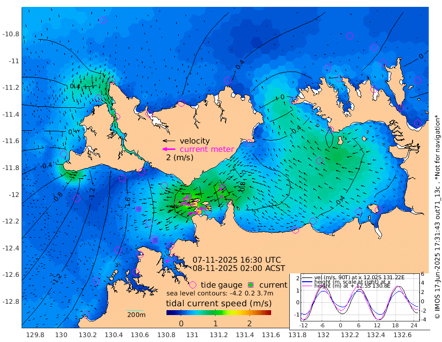178cm/s -101T +4cm/s rms + 6cm/s 51T. Darwin_C1 52m 143cm/s -90T +4cm/s rms + 7cm/s -161T. Darwin_CW1 22m 94cm/s -107T +4cm/s rms + 8cm/s 61T. Darwin_CW2 34m 84cm/s -134T +3cm/s rms + 9cm/s 98T. Darwin_CW3 22m 145cm/s -91T +5cm/s rms + 7cm/s 88T. Darwin_C3 56m 97cm/s -115T +2cm/s rms + 9cm/s -126T. Darwin_CTbW 22m 17cm/s -109T +1cm/s rms + 1cm/s -47T. DARBGF 30m 15cm/s -103T +4cm/s rms + 3cm/s 80T. NRSDAR 19m 79cm Goodrich Bank -112cm Point Jenny -110cm Native Point -125cm Fish Reef -141cm Tapa Bay -7cm Point Fawcett (Offshore) -158cm Burge Point -151cm Munkunuwa -74cm Beagle A -172cm Parsons Bank -144cm Fenton Patches -165cm Hancox Shoal Area -169cm Nightcliff -180cm Darwin -141cm Charles Point Patches -125cm Glyde Point -99cm Chambers Bay -102cm Point Stuart -107cm Cape Hotham -89cm Christine Reef -114cm West Alligator Head -97cm East Field Island -81cm Two Hills Bay -71cm Camp Point -138cm Medina Inlet South 2cm South Barlow Point 35cm St. Asaph Bay 74cm Cape Van Dieman 68cm Snake Bay 73cm Cache Point 44cm Point Jahleel (Off) -12cm Cape Don 34cm Port Essington 32cm Smith Point - West 36cm NW Peacock Island 59cm North Of Jones Shoal 18cm Peacock Island 3cm Point David 27cm D'urville Point -4cm Copeland Island 11cm One Tree Point