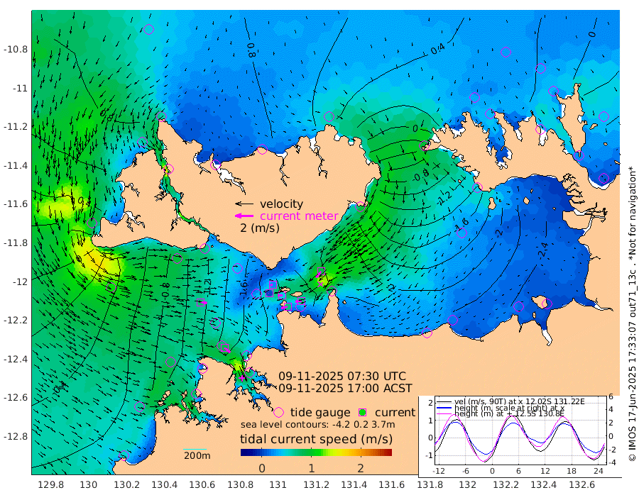 70cm/s -101T +4cm/s rms + 6cm/s 51T. Darwin_C1 52m 68cm/s -93T +4cm/s rms + 7cm/s -161T. Darwin_CW1 22m 2cm/s -73T +4cm/s rms + 8cm/s 61T. Darwin_CW2 34m 88cm/s -141T +3cm/s rms + 9cm/s 98T. Darwin_CW3 22m 48cm/s -87T +5cm/s rms + 7cm/s 88T. Darwin_C3 56m 25cm/s -115T +2cm/s rms + 9cm/s -126T. Darwin_CTbW 22m 73cm/s 97T +1cm/s rms + 1cm/s -47T. DARBGF 30m 83cm/s 127T +4cm/s rms + 3cm/s 80T. NRSDAR 19m 63cm Goodrich Bank -23cm Point Jenny -19cm Native Point -29cm Fish Reef -41cm Tapa Bay 49cm Point Fawcett (Offshore) -66cm Burge Point -2cm Munkunuwa 1cm Beagle A -68cm Parsons Bank -58cm Fenton Patches -91cm Hancox Shoal Area -75cm Nightcliff -98cm Darwin -66cm Charles Point Patches -145cm Glyde Point -222cm Chambers Bay -248cm Point Stuart -162cm Cape Hotham -206cm Christine Reef -276cm West Alligator Head -316cm East Field Island -178cm Two Hills Bay -174cm Camp Point -34cm Medina Inlet South 60cm South Barlow Point 73cm St. Asaph Bay 69cm Cape Van Dieman 63cm Snake Bay 51cm Cache Point 24cm Point Jahleel (Off) -47cm Cape Don 8cm Port Essington 14cm Smith Point - West 4cm NW Peacock Island 28cm North Of Jones Shoal 7cm Peacock Island -43cm Point David 4cm D'urville Point -49cm Copeland Island -37cm One Tree Point