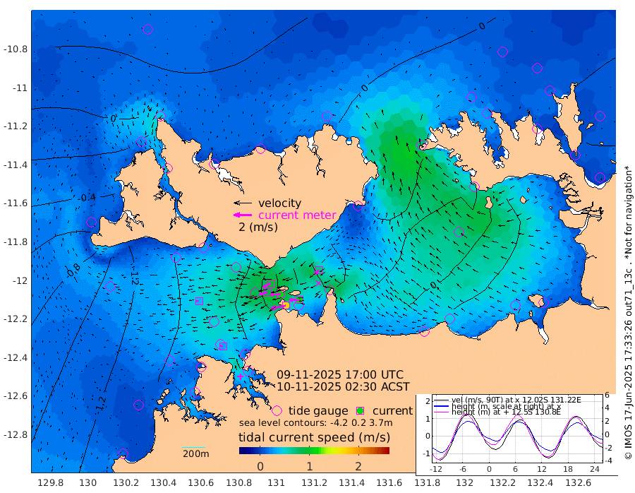 172cm/s -102T +4cm/s rms + 6cm/s 51T. Darwin_C1 52m 113cm/s -89T +4cm/s rms + 7cm/s -161T. Darwin_CW1 22m 89cm/s -108T +4cm/s rms + 8cm/s 61T. Darwin_CW2 34m 68cm/s -130T +3cm/s rms + 9cm/s 98T. Darwin_CW3 22m 113cm/s -91T +5cm/s rms + 7cm/s 88T. Darwin_C3 56m 97cm/s -115T +2cm/s rms + 9cm/s -126T. Darwin_CTbW 22m 39cm/s -93T +1cm/s rms + 1cm/s -47T. DARBGF 30m 35cm/s -72T +4cm/s rms + 3cm/s 80T. NRSDAR 19m 41cm Goodrich Bank -97cm Point Jenny -96cm Native Point -113cm Fish Reef -118cm Tapa Bay -29cm Point Fawcett (Offshore) -125cm Burge Point -136cm Munkunuwa -73cm Beagle A -145cm Parsons Bank -117cm Fenton Patches -129cm Hancox Shoal Area -130cm Nightcliff -142cm Darwin -117cm Charles Point Patches -79cm Glyde Point -26cm Chambers Bay -27cm Point Stuart -59cm Cape Hotham -20cm Christine Reef -28cm West Alligator Head 2cm East Field Island -33cm Two Hills Bay -17cm Camp Point -120cm Medina Inlet South -28cm South Barlow Point 3cm St. Asaph Bay 34cm Cape Van Dieman 27cm Snake Bay 37cm Cache Point 18cm Point Jahleel (Off) -14cm Cape Don 6cm Port Essington 1cm Smith Point - West 6cm NW Peacock Island 26cm North Of Jones Shoal 6cm Peacock Island -16cm Point David -4cm D'urville Point -20cm Copeland Island -9cm One Tree Point