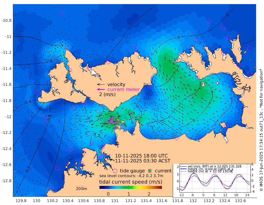 155cm/s -101T +4cm/s rms + 6cm/s 51T. Darwin_C1 52m 96cm/s -90T +4cm/s rms + 7cm/s -161T. Darwin_CW1 22m 69cm/s -107T +4cm/s rms + 8cm/s 61T. Darwin_CW2 34m 63cm/s -132T +3cm/s rms + 9cm/s 98T. Darwin_CW3 22m 90cm/s -91T +5cm/s rms + 7cm/s 88T. Darwin_C3 56m 88cm/s -115T +2cm/s rms + 9cm/s -126T. Darwin_CTbW 22m 28cm/s -93T +1cm/s rms + 1cm/s -47T. DARBGF 30m 26cm/s -75T +4cm/s rms + 3cm/s 80T. NRSDAR 19m 44cm Goodrich Bank -71cm Point Jenny -69cm Native Point -87cm Fish Reef -89cm Tapa Bay -14cm Point Fawcett (Offshore) -94cm Burge Point -102cm Munkunuwa -52cm Beagle A -114cm Parsons Bank -90cm Fenton Patches -104cm Hancox Shoal Area -102cm Nightcliff -112cm Darwin -88cm Charles Point Patches -68cm Glyde Point -36cm Chambers Bay -40cm Point Stuart -57cm Cape Hotham -29cm Christine Reef -44cm West Alligator Head -22cm East Field Island -40cm Two Hills Bay -20cm Camp Point -90cm Medina Inlet South -11cm South Barlow Point 14cm St. Asaph Bay 39cm Cape Van Dieman 33cm Snake Bay 38cm Cache Point 20cm Point Jahleel (Off) -11cm Cape Don 9cm Port Essington 3cm Smith Point - West 7cm NW Peacock Island 26cm North Of Jones Shoal 7cm Peacock Island -12cm Point David -2cm D'urville Point -17cm Copeland Island -7cm One Tree Point