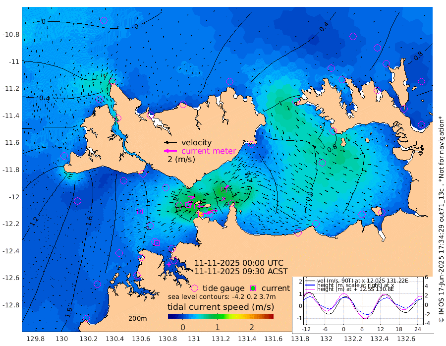 171cm/s 78T +4cm/s rms + 6cm/s 51T. Darwin_C1 52m 106cm/s 91T +4cm/s rms + 7cm/s -161T. Darwin_CW1 22m 64cm/s 74T +4cm/s rms + 8cm/s 61T. Darwin_CW2 34m 96cm/s 44T +3cm/s rms + 9cm/s 98T. Darwin_CW3 22m 101cm/s 89T +5cm/s rms + 7cm/s 88T. Darwin_C3 56m 85cm/s 65T +2cm/s rms + 9cm/s -126T. Darwin_CTbW 22m 15cm/s 79T +1cm/s rms + 1cm/s -47T. DARBGF 30m 13cm/s 87T +4cm/s rms + 3cm/s 80T. NRSDAR 19m -12cm Goodrich Bank 103cm Point Jenny 100cm Native Point 119cm Fish Reef 125cm Tapa Bay 45cm Point Fawcett (Offshore) 133cm Burge Point 118cm Munkunuwa 75cm Beagle A 155cm Parsons Bank 120cm Fenton Patches 147cm Hancox Shoal Area 137cm Nightcliff 165cm Darwin 145cm Charles Point Patches 121cm Glyde Point 91cm Chambers Bay 99cm Point Stuart 109cm Cape Hotham 79cm Christine Reef 101cm West Alligator Head 85cm East Field Island 94cm Two Hills Bay 81cm Camp Point 127cm Medina Inlet South 40cm South Barlow Point 11cm St. Asaph Bay -7cm Cape Van Dieman 4cm Snake Bay -1cm Cache Point 16cm Point Jahleel (Off) 64cm Cape Don 43cm Port Essington 41cm Smith Point - West 45cm NW Peacock Island 22cm North Of Jones Shoal 12cm Peacock Island 84cm Point David 54cm D'urville Point 88cm Copeland Island 78cm One Tree Point