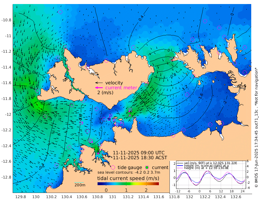 47cm/s -102T +4cm/s rms + 6cm/s 51T. Darwin_C1 52m 37cm/s -92T +4cm/s rms + 7cm/s -161T. Darwin_CW1 22m 2cm/s -83T +4cm/s rms + 8cm/s 61T. Darwin_CW2 34m 65cm/s -141T +3cm/s rms + 9cm/s 98T. Darwin_CW3 22m 31cm/s -87T +5cm/s rms + 7cm/s 88T. Darwin_C3 56m 18cm/s -114T +2cm/s rms + 9cm/s -126T. Darwin_CTbW 22m 50cm/s 96T +1cm/s rms + 1cm/s -47T. DARBGF 30m 57cm/s 126T +4cm/s rms + 3cm/s 80T. NRSDAR 19m 48cm Goodrich Bank -23cm Point Jenny -19cm Native Point -27cm Fish Reef -34cm Tapa Bay 29cm Point Fawcett (Offshore) -51cm Burge Point -4cm Munkunuwa -1cm Beagle A -52cm Parsons Bank -41cm Fenton Patches -68cm Hancox Shoal Area -55cm Nightcliff -72cm Darwin -50cm Charles Point Patches -111cm Glyde Point -176cm Chambers Bay -194cm Point Stuart -126cm Cape Hotham -158cm Christine Reef -215cm West Alligator Head -244cm East Field Island -140cm Two Hills Bay -134cm Camp Point -27cm Medina Inlet South 45cm South Barlow Point 53cm St. Asaph Bay 51cm Cape Van Dieman 48cm Snake Bay 36cm Cache Point 17cm Point Jahleel (Off) -41cm Cape Don 2cm Port Essington 9cm Smith Point - West 1cm NW Peacock Island 17cm North Of Jones Shoal 4cm Peacock Island -39cm Point David 0cm D'urville Point -43cm Copeland Island -35cm One Tree Point