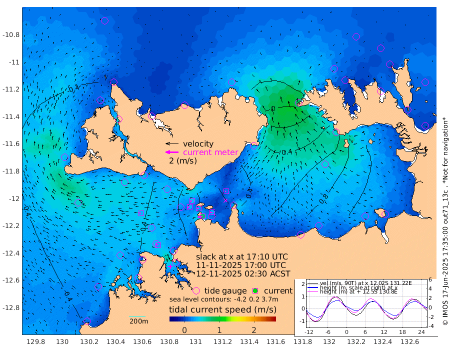 76cm/s -102T +4cm/s rms + 6cm/s 51T. Darwin_C1 52m 33cm/s -89T +4cm/s rms + 7cm/s -161T. Darwin_CW1 22m 37cm/s -111T +4cm/s rms + 8cm/s 61T. Darwin_CW2 34m 18cm/s -102T +3cm/s rms + 9cm/s 98T. Darwin_CW3 22m 28cm/s -94T +5cm/s rms + 7cm/s 88T. Darwin_C3 56m 41cm/s -117T +2cm/s rms + 9cm/s -126T. Darwin_CTbW 22m 39cm/s -87T +1cm/s rms + 1cm/s -47T. DARBGF 30m 34cm/s -61T +4cm/s rms + 3cm/s 80T. NRSDAR 19m -9cm Goodrich Bank -21cm Point Jenny -21cm Native Point -29cm Fish Reef -26cm Tapa Bay -26cm Point Fawcett (Offshore) -16cm Burge Point -45cm Munkunuwa -19cm Beagle A -38cm Parsons Bank -17cm Fenton Patches -22cm Hancox Shoal Area -20cm Nightcliff -24cm Darwin -27cm Charles Point Patches 22cm Glyde Point 79cm Chambers Bay 86cm Point Stuart 35cm Cape Hotham 75cm Christine Reef 99cm West Alligator Head 130cm East Field Island 50cm Two Hills Bay 61cm Camp Point -32cm Medina Inlet South -36cm South Barlow Point -24cm St. Asaph Bay -15cm Cape Van Dieman -20cm Snake Bay -8cm Cache Point -8cm Point Jahleel (Off) 1cm Cape Don -19cm Port Essington -24cm Smith Point - West -22cm NW Peacock Island -16cm North Of Jones Shoal -7cm Peacock Island -23cm Point David -28cm D'urville Point -25cm Copeland Island -21cm One Tree Point