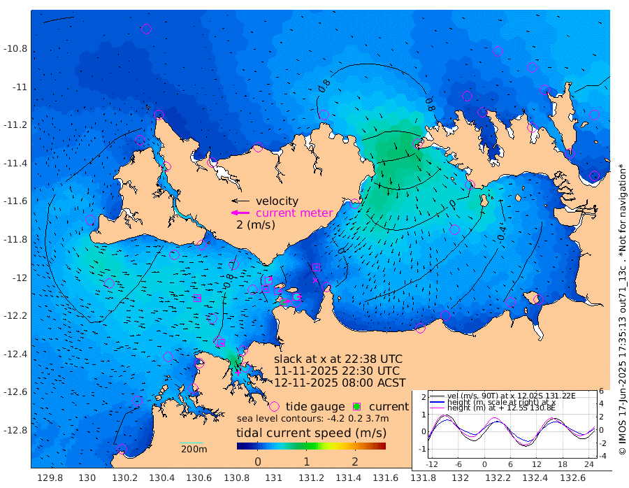 74cm/s 79T +4cm/s rms + 6cm/s 51T. Darwin_C1 52m 52cm/s 84T +4cm/s rms + 7cm/s -161T. Darwin_CW1 22m 23cm/s 79T +4cm/s rms + 8cm/s 61T. Darwin_CW2 34m 14cm/s 76T +3cm/s rms + 9cm/s 98T. Darwin_CW3 22m 29cm/s 87T +5cm/s rms + 7cm/s 88T. Darwin_C3 56m 47cm/s 62T +2cm/s rms + 9cm/s -126T. Darwin_CTbW 22m 34cm/s 93T +1cm/s rms + 1cm/s -47T. DARBGF 30m 31cm/s 120T +4cm/s rms + 3cm/s 80T. NRSDAR 19m 62cm Goodrich Bank 58cm Point Jenny 60cm Native Point 60cm Fish Reef 64cm Tapa Bay 75cm Point Fawcett (Offshore) 55cm Burge Point 69cm Munkunuwa 51cm Beagle A 66cm Parsons Bank 44cm Fenton Patches 53cm Hancox Shoal Area 51cm Nightcliff 67cm Darwin 79cm Charles Point Patches 15cm Glyde Point -46cm Chambers Bay -54cm Point Stuart -3cm Cape Hotham -42cm Christine Reef -70cm West Alligator Head -98cm East Field Island -17cm Two Hills Bay -14cm Camp Point 72cm Medina Inlet South 82cm South Barlow Point 71cm St. Asaph Bay 67cm Cape Van Dieman 75cm Snake Bay 61cm Cache Point 53cm Point Jahleel (Off) 45cm Cape Don 68cm Port Essington 64cm Smith Point - West 65cm NW Peacock Island 68cm North Of Jones Shoal 25cm Peacock Island 70cm Point David 69cm D'urville Point 66cm Copeland Island 71cm One Tree Point