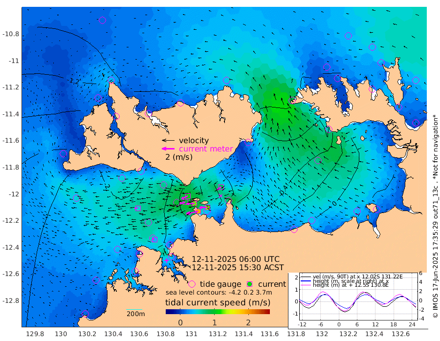 192cm/s -102T +4cm/s rms + 6cm/s 51T. Darwin_C1 52m 130cm/s -89T +4cm/s rms + 7cm/s -161T. Darwin_CW1 22m 91cm/s -107T +4cm/s rms + 8cm/s 61T. Darwin_CW2 34m 78cm/s -127T +3cm/s rms + 9cm/s 98T. Darwin_CW3 22m 128cm/s -91T +5cm/s rms + 7cm/s 88T. Darwin_C3 56m 108cm/s -115T +2cm/s rms + 9cm/s -126T. Darwin_CTbW 22m 50cm/s -93T +1cm/s rms + 1cm/s -47T. DARBGF 30m 37cm/s -68T +4cm/s rms + 3cm/s 80T. NRSDAR 19m -74cm Goodrich Bank -161cm Point Jenny -163cm Native Point -169cm Fish Reef -176cm Tapa Bay -138cm Point Fawcett (Offshore) -174cm Burge Point -176cm Munkunuwa -144cm Beagle A -176cm Parsons Bank -160cm Fenton Patches -160cm Hancox Shoal Area -171cm Nightcliff -189cm Darwin -187cm Charles Point Patches -112cm Glyde Point -40cm Chambers Bay -33cm Point Stuart -82cm Cape Hotham -42cm Christine Reef -27cm West Alligator Head 5cm East Field Island -61cm Two Hills Bay -55cm Camp Point -183cm Medina Inlet South -128cm South Barlow Point -108cm St. Asaph Bay -79cm Cape Van Dieman -89cm Snake Bay -77cm Cache Point -77cm Point Jahleel (Off) -87cm Cape Don -81cm Port Essington -80cm Smith Point - West -74cm NW Peacock Island -76cm North Of Jones Shoal -27cm Peacock Island -71cm Point David -78cm D'urville Point -66cm Copeland Island -76cm One Tree Point