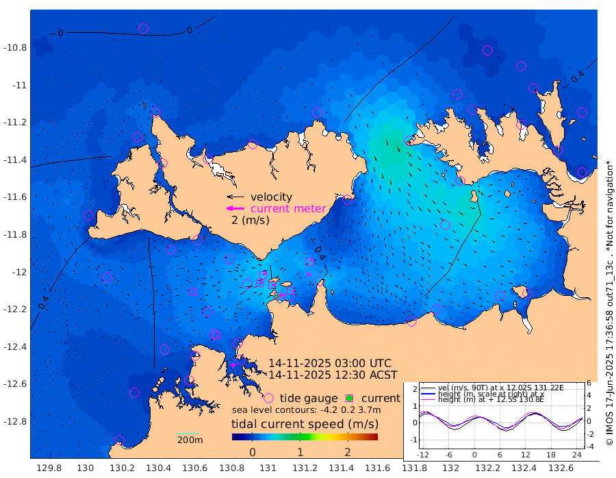78cm/s 79T +4cm/s rms + 6cm/s 51T. Darwin_C1 52m 32cm/s 90T +4cm/s rms + 7cm/s -161T. Darwin_CW1 22m 30cm/s 73T +4cm/s rms + 8cm/s 61T. Darwin_CW2 34m 36cm/s 48T +3cm/s rms + 9cm/s 98T. Darwin_CW3 22m 38cm/s 88T +5cm/s rms + 7cm/s 88T. Darwin_C3 56m 43cm/s 65T +2cm/s rms + 9cm/s -126T. Darwin_CTbW 22m 19cm/s 91T +1cm/s rms + 1cm/s -47T. DARBGF 30m 15cm/s 115T +4cm/s rms + 3cm/s 80T. NRSDAR 19m -8cm Goodrich Bank 44cm Point Jenny 40cm Native Point 51cm Fish Reef 50cm Tapa Bay 30cm Point Fawcett (Offshore) 42cm Burge Point 46cm Munkunuwa 27cm Beagle A 58cm Parsons Bank 36cm Fenton Patches 55cm Hancox Shoal Area 53cm Nightcliff 55cm Darwin 50cm Charles Point Patches 39cm Glyde Point 36cm Chambers Bay 33cm Point Stuart 40cm Cape Hotham 21cm Christine Reef 33cm West Alligator Head 19cm East Field Island 37cm Two Hills Bay 19cm Camp Point 48cm Medina Inlet South 17cm South Barlow Point 8cm St. Asaph Bay -3cm Cape Van Dieman 0cm Snake Bay 3cm Cache Point 9cm Point Jahleel (Off) 30cm Cape Don 23cm Port Essington 25cm Smith Point - West 25cm NW Peacock Island 19cm North Of Jones Shoal 9cm Peacock Island 45cm Point David 30cm D'urville Point 48cm Copeland Island 43cm One Tree Point