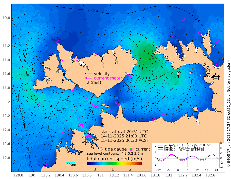 72cm/s -101T +4cm/s rms + 6cm/s 51T. Darwin_C1 52m 30cm/s -89T +4cm/s rms + 7cm/s -161T. Darwin_CW1 22m 35cm/s -106T +4cm/s rms + 8cm/s 61T. Darwin_CW2 34m 19cm/s -126T +3cm/s rms + 9cm/s 98T. Darwin_CW3 22m 38cm/s -92T +5cm/s rms + 7cm/s 88T. Darwin_C3 56m 46cm/s -115T +2cm/s rms + 9cm/s -126T. Darwin_CTbW 22m 41cm/s -88T +1cm/s rms + 1cm/s -47T. DARBGF 30m 41cm/s -59T +4cm/s rms + 3cm/s 80T. NRSDAR 19m -30cm Goodrich Bank -70cm Point Jenny -67cm Native Point -77cm Fish Reef -67cm Tapa Bay -68cm Point Fawcett (Offshore) -61cm Burge Point -68cm Munkunuwa -72cm Beagle A -66cm Parsons Bank -67cm Fenton Patches -58cm Hancox Shoal Area -70cm Nightcliff -60cm Darwin -63cm Charles Point Patches -28cm Glyde Point -2cm Chambers Bay 11cm Point Stuart -21cm Cape Hotham 1cm Christine Reef 16cm West Alligator Head 36cm East Field Island -12cm Two Hills Bay 4cm Camp Point -68cm Medina Inlet South -59cm South Barlow Point -52cm St. Asaph Bay -35cm Cape Van Dieman -36cm Snake Bay -38cm Cache Point -36cm Point Jahleel (Off) -36cm Cape Don -38cm Port Essington -46cm Smith Point - West -41cm NW Peacock Island -42cm North Of Jones Shoal -15cm Peacock Island -32cm Point David -46cm D'urville Point -33cm Copeland Island -37cm One Tree Point