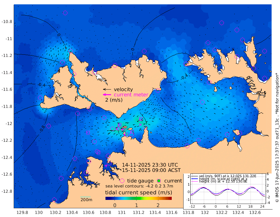 61cm/s -102T +4cm/s rms + 6cm/s 51T. Darwin_C1 52m 39cm/s -88T +4cm/s rms + 7cm/s -161T. Darwin_CW1 22m 46cm/s -107T +4cm/s rms + 8cm/s 61T. Darwin_CW2 34m 36cm/s -138T +3cm/s rms + 9cm/s 98T. Darwin_CW3 22m 66cm/s -90T +5cm/s rms + 7cm/s 88T. Darwin_C3 56m 34cm/s -115T +2cm/s rms + 9cm/s -126T. Darwin_CTbW 22m 17cm/s -101T +1cm/s rms + 1cm/s -47T. DARBGF 30m 13cm/s -70T +4cm/s rms + 3cm/s 80T. NRSDAR 19m 6cm Goodrich Bank -109cm Point Jenny -106cm Native Point -124cm Fish Reef -115cm Tapa Bay -55cm Point Fawcett (Offshore) -134cm Burge Point -104cm Munkunuwa -107cm Beagle A -120cm Parsons Bank -137cm Fenton Patches -118cm Hancox Shoal Area -130cm Nightcliff -132cm Darwin -117cm Charles Point Patches -110cm Glyde Point -103cm Chambers Bay -102cm Point Stuart -101cm Cape Hotham -93cm Christine Reef -111cm West Alligator Head -110cm East Field Island -88cm Two Hills Bay -79cm Camp Point -113cm Medina Inlet South -37cm South Barlow Point -23cm St. Asaph Bay 4cm Cape Van Dieman 4cm Snake Bay -5cm Cache Point -15cm Point Jahleel (Off) -44cm Cape Don -15cm Port Essington -18cm Smith Point - West -13cm NW Peacock Island -3cm North Of Jones Shoal -2cm Peacock Island -14cm Point David -17cm D'urville Point -17cm Copeland Island -17cm One Tree Point