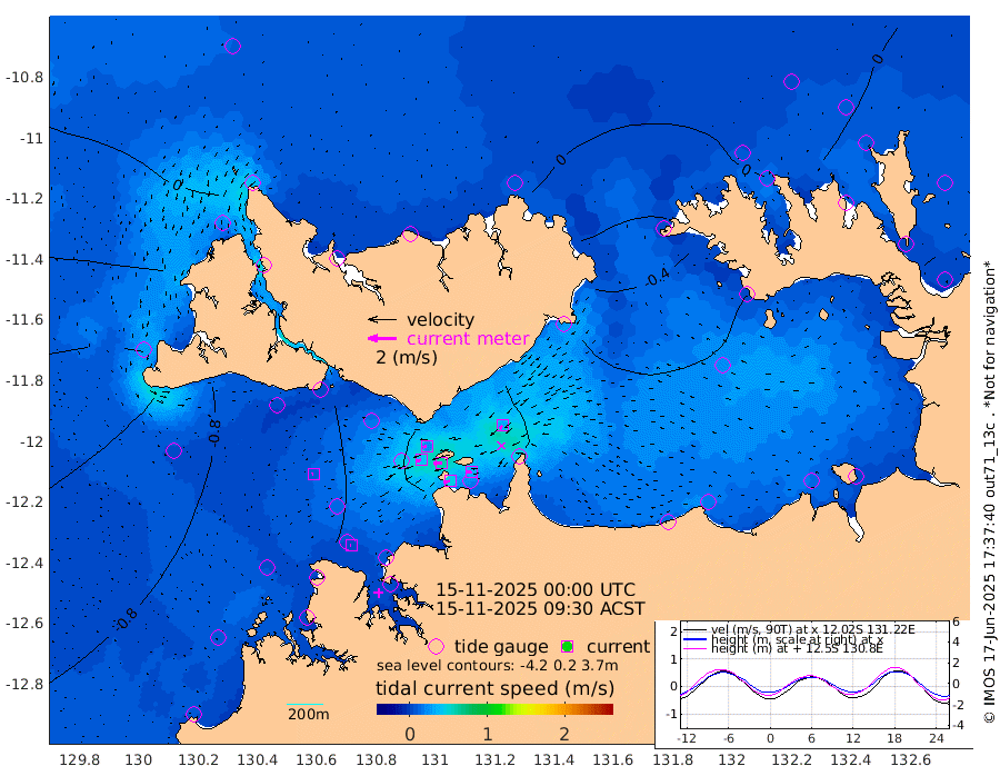 46cm/s -102T +4cm/s rms + 6cm/s 51T. Darwin_C1 52m 34cm/s -87T +4cm/s rms + 7cm/s -161T. Darwin_CW1 22m 40cm/s -107T +4cm/s rms + 8cm/s 61T. Darwin_CW2 34m 32cm/s -141T +3cm/s rms + 9cm/s 98T. Darwin_CW3 22m 60cm/s -90T +5cm/s rms + 7cm/s 88T. Darwin_C3 56m 24cm/s -114T +2cm/s rms + 9cm/s -126T. Darwin_CTbW 22m 9cm/s -115T +1cm/s rms + 1cm/s -47T. DARBGF 30m 5cm/s -87T +4cm/s rms + 3cm/s 80T. NRSDAR 19m 13cm Goodrich Bank -99cm Point Jenny -96cm Native Point -114cm Fish Reef -105cm Tapa Bay -42cm Point Fawcett (Offshore) -128cm Burge Point -94cm Munkunuwa -98cm Beagle A -111cm Parsons Bank -130cm Fenton Patches -111cm Hancox Shoal Area -122cm Nightcliff -126cm Darwin -110cm Charles Point Patches -110cm Glyde Point -109cm Chambers Bay -111cm Point Stuart -102cm Cape Hotham -100cm Christine Reef -122cm West Alligator Head -126cm East Field Island -90cm Two Hills Bay -85cm Camp Point -104cm Medina Inlet South -26cm South Barlow Point -13cm St. Asaph Bay 12cm Cape Van Dieman 13cm Snake Bay 3cm Cache Point -7cm Point Jahleel (Off) -38cm Cape Don -6cm Port Essington -8cm Smith Point - West -4cm NW Peacock Island 6cm North Of Jones Shoal 1cm Peacock Island -6cm Point David -7cm D'urville Point -9cm Copeland Island -8cm One Tree Point