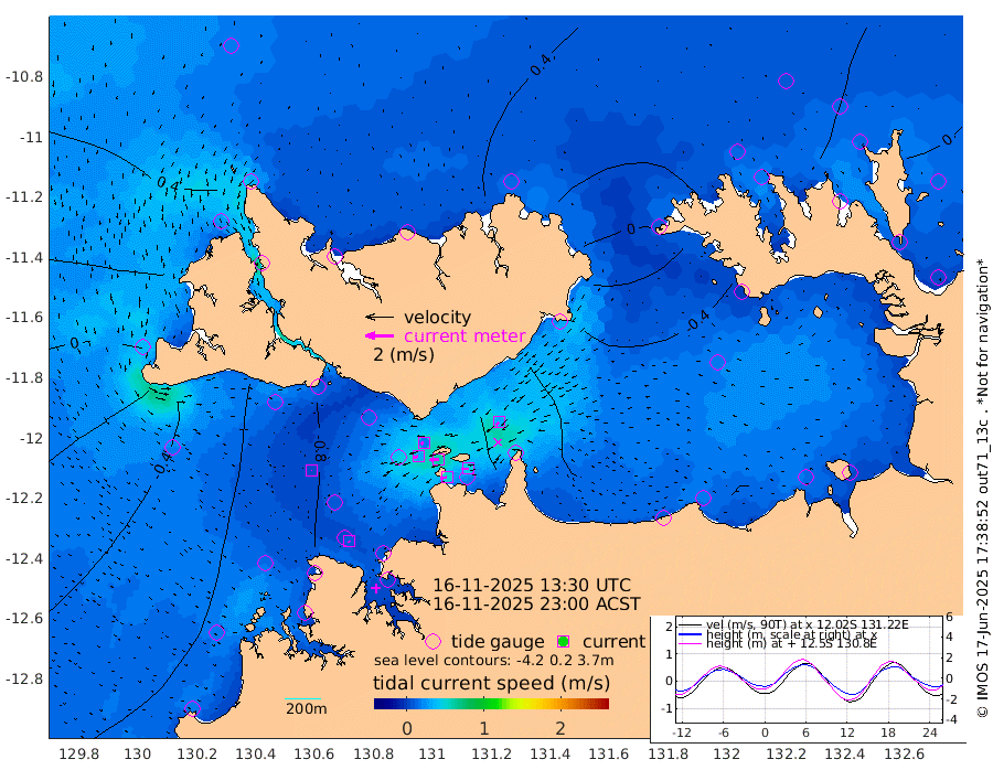 49cm/s -101T +4cm/s rms + 6cm/s 51T. Darwin_C1 52m 48cm/s -90T +4cm/s rms + 7cm/s -161T. Darwin_CW1 22m 34cm/s -106T +4cm/s rms + 8cm/s 61T. Darwin_CW2 34m 33cm/s -137T +3cm/s rms + 9cm/s 98T. Darwin_CW3 22m 62cm/s -91T +5cm/s rms + 7cm/s 88T. Darwin_C3 56m 20cm/s -115T +2cm/s rms + 9cm/s -126T. Darwin_CTbW 22m 5cm/s 131T +1cm/s rms + 1cm/s -47T. DARBGF 30m 8cm/s 150T +4cm/s rms + 3cm/s 80T. NRSDAR 19m 53cm Goodrich Bank -49cm Point Jenny -47cm Native Point -60cm Fish Reef -67cm Tapa Bay 4cm Point Fawcett (Offshore) -74cm Burge Point -64cm Munkunuwa -24cm Beagle A -77cm Parsons Bank -63cm Fenton Patches -79cm Hancox Shoal Area -73cm Nightcliff -90cm Darwin -71cm Charles Point Patches -75cm Glyde Point -79cm Chambers Bay -86cm Point Stuart -71cm Cape Hotham -60cm Christine Reef -96cm West Alligator Head -96cm East Field Island -60cm Two Hills Bay -58cm Camp Point -63cm Medina Inlet South 21cm South Barlow Point 33cm St. Asaph Bay 51cm Cape Van Dieman 50cm Snake Bay 48cm Cache Point 32cm Point Jahleel (Off) -5cm Cape Don 23cm Port Essington 28cm Smith Point - West 28cm NW Peacock Island 40cm North Of Jones Shoal 12cm Peacock Island 0cm Point David 25cm D'urville Point -3cm Copeland Island 6cm One Tree Point