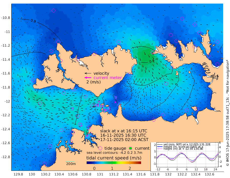 72cm/s 78T +4cm/s rms + 6cm/s 51T. Darwin_C1 52m 43cm/s 86T +4cm/s rms + 7cm/s -161T. Darwin_CW1 22m 45cm/s 74T +4cm/s rms + 8cm/s 61T. Darwin_CW2 34m 19cm/s 62T +3cm/s rms + 9cm/s 98T. Darwin_CW3 22m 54cm/s 88T +5cm/s rms + 7cm/s 88T. Darwin_C3 56m 51cm/s 64T +2cm/s rms + 9cm/s -126T. Darwin_CTbW 22m 45cm/s 91T +1cm/s rms + 1cm/s -47T. DARBGF 30m 43cm/s 120T +4cm/s rms + 3cm/s 80T. NRSDAR 19m 57cm Goodrich Bank 108cm Point Jenny 109cm Native Point 114cm Fish Reef 107cm Tapa Bay 96cm Point Fawcett (Offshore) 108cm Burge Point 104cm Munkunuwa 113cm Beagle A 101cm Parsons Bank 113cm Fenton Patches 88cm Hancox Shoal Area 106cm Nightcliff 105cm Darwin 109cm Charles Point Patches 57cm Glyde Point 8cm Chambers Bay -6cm Point Stuart 35cm Cape Hotham 7cm Christine Reef -15cm West Alligator Head -36cm East Field Island 20cm Two Hills Bay 18cm Camp Point 111cm Medina Inlet South 93cm South Barlow Point 79cm St. Asaph Bay 61cm Cape Van Dieman 66cm Snake Bay 60cm Cache Point 55cm Point Jahleel (Off) 55cm Cape Don 58cm Port Essington 61cm Smith Point - West 55cm NW Peacock Island 54cm North Of Jones Shoal 19cm Peacock Island 44cm Point David 60cm D'urville Point 41cm Copeland Island 49cm One Tree Point