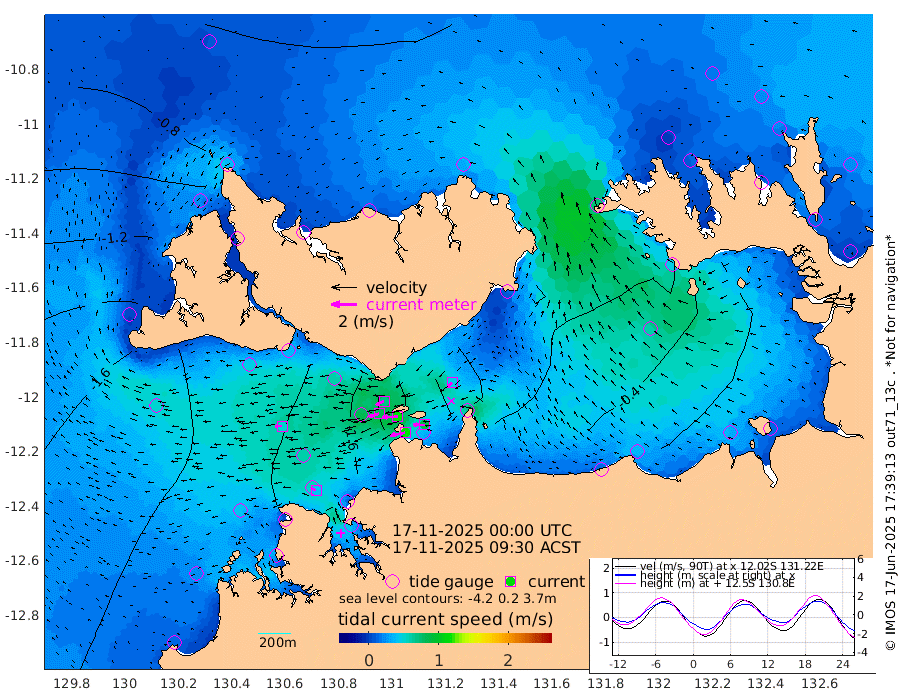 116cm/s -102T +4cm/s rms + 6cm/s 51T. Darwin_C1 52m 89cm/s -89T +4cm/s rms + 7cm/s -161T. Darwin_CW1 22m 84cm/s -107T +4cm/s rms + 8cm/s 61T. Darwin_CW2 34m 46cm/s -132T +3cm/s rms + 9cm/s 98T. Darwin_CW3 22m 118cm/s -91T +5cm/s rms + 7cm/s 88T. Darwin_C3 56m 70cm/s -115T +2cm/s rms + 9cm/s -126T. Darwin_CTbW 22m 53cm/s -93T +1cm/s rms + 1cm/s -47T. DARBGF 30m 44cm/s -63T +4cm/s rms + 3cm/s 80T. NRSDAR 19m -47cm Goodrich Bank -186cm Point Jenny -183cm Native Point -202cm Fish Reef -195cm Tapa Bay -137cm Point Fawcett (Offshore) -207cm Burge Point -184cm Munkunuwa -180cm Beagle A -193cm Parsons Bank -206cm Fenton Patches -184cm Hancox Shoal Area -208cm Nightcliff -210cm Darwin -202cm Charles Point Patches -142cm Glyde Point -92cm Chambers Bay -79cm Point Stuart -118cm Cape Hotham -82cm Christine Reef -78cm West Alligator Head -57cm East Field Island -91cm Two Hills Bay -84cm Camp Point -197cm Medina Inlet South -115cm South Barlow Point -94cm St. Asaph Bay -53cm Cape Van Dieman -58cm Snake Bay -59cm Cache Point -63cm Point Jahleel (Off) -86cm Cape Don -65cm Port Essington -69cm Smith Point - West -61cm NW Peacock Island -59cm North Of Jones Shoal -22cm Peacock Island -58cm Point David -67cm D'urville Point -58cm Copeland Island -64cm One Tree Point