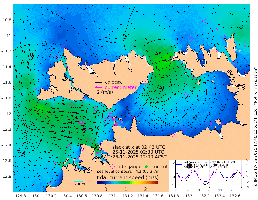 79cm/s -103T +4cm/s rms + 6cm/s 51T. Darwin_C1 52m 51cm/s -86T +4cm/s rms + 7cm/s -161T. Darwin_CW1 22m 53cm/s -106T +4cm/s rms + 8cm/s 61T. Darwin_CW2 34m 15cm/s -112T +3cm/s rms + 9cm/s 98T. Darwin_CW3 22m 65cm/s -92T +5cm/s rms + 7cm/s 88T. Darwin_C3 56m 45cm/s -116T +2cm/s rms + 9cm/s -126T. Darwin_CTbW 22m 66cm/s -90T +1cm/s rms + 1cm/s -47T. DARBGF 30m 69cm/s -58T +4cm/s rms + 3cm/s 80T. NRSDAR 19m -122cm Goodrich Bank -167cm Point Jenny -171cm Native Point -158cm Fish Reef -162cm Tapa Bay -161cm Point Fawcett (Offshore) -164cm Burge Point -166cm Munkunuwa -174cm Beagle A -140cm Parsons Bank -160cm Fenton Patches -121cm Hancox Shoal Area -138cm Nightcliff -140cm Darwin -160cm Charles Point Patches -56cm Glyde Point 45cm Chambers Bay 67cm Point Stuart -14cm Cape Hotham 20cm Christine Reef 86cm West Alligator Head 123cm East Field Island 16cm Two Hills Bay 0cm Camp Point -161cm Medina Inlet South -160cm South Barlow Point -151cm St. Asaph Bay -127cm Cape Van Dieman -125cm Snake Bay -119cm Cache Point -100cm Point Jahleel (Off) -71cm Cape Don -91cm Port Essington -94cm Smith Point - West -85cm NW Peacock Island -88cm North Of Jones Shoal -29cm Peacock Island -48cm Point David -86cm D'urville Point -40cm Copeland Island -53cm One Tree Point