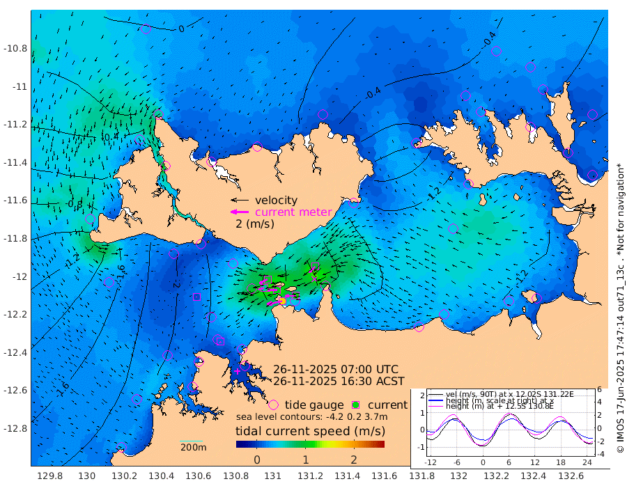 175cm/s -101T +4cm/s rms + 6cm/s 51T. Darwin_C1 52m 116cm/s -90T +4cm/s rms + 7cm/s -161T. Darwin_CW1 22m 66cm/s -106T +4cm/s rms + 8cm/s 61T. Darwin_CW2 34m 96cm/s -135T +3cm/s rms + 9cm/s 98T. Darwin_CW3 22m 109cm/s -90T +5cm/s rms + 7cm/s 88T. Darwin_C3 56m 102cm/s -115T +2cm/s rms + 9cm/s -126T. Darwin_CTbW 22m 6cm/s 177T +1cm/s rms + 1cm/s -47T. DARBGF 30m 13cm/s 163T +4cm/s rms + 3cm/s 80T. NRSDAR 19m -3cm Goodrich Bank -138cm Point Jenny -138cm Native Point -138cm Fish Reef -163cm Tapa Bay -59cm Point Fawcett (Offshore) -168cm Burge Point -132cm Munkunuwa -107cm Beagle A -172cm Parsons Bank -160cm Fenton Patches -182cm Hancox Shoal Area -182cm Nightcliff -199cm Darwin -179cm Charles Point Patches -166cm Glyde Point -162cm Chambers Bay -159cm Point Stuart -148cm Cape Hotham -153cm Christine Reef -170cm West Alligator Head -170cm East Field Island -137cm Two Hills Bay -141cm Camp Point -153cm Medina Inlet South -49cm South Barlow Point -25cm St. Asaph Bay -4cm Cape Van Dieman -13cm Snake Bay -10cm Cache Point -28cm Point Jahleel (Off) -80cm Cape Don -41cm Port Essington -40cm Smith Point - West -41cm NW Peacock Island -22cm North Of Jones Shoal -10cm Peacock Island -70cm Point David -46cm D'urville Point -72cm Copeland Island -65cm One Tree Point