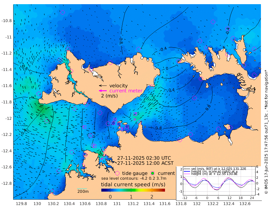 38cm/s 81T +4cm/s rms + 6cm/s 51T. Darwin_C1 52m 4cm/s 92T +4cm/s rms + 7cm/s -161T. Darwin_CW1 22m 7cm/s 47T +4cm/s rms + 8cm/s 61T. Darwin_CW2 34m 37cm/s 42T +3cm/s rms + 9cm/s 98T. Darwin_CW3 22m 8cm/s 92T +5cm/s rms + 7cm/s 88T. Darwin_C3 56m 20cm/s 64T +2cm/s rms + 9cm/s -126T. Darwin_CTbW 22m 33cm/s -86T +1cm/s rms + 1cm/s -47T. DARBGF 30m 40cm/s -54T +4cm/s rms + 3cm/s 80T. NRSDAR 19m -82cm Goodrich Bank -32cm Point Jenny -35cm Native Point -31cm Fish Reef -16cm Tapa Bay -73cm Point Fawcett (Offshore) -21cm Burge Point -33cm Munkunuwa -53cm Beagle A 0cm Parsons Bank -19cm Fenton Patches 19cm Hancox Shoal Area 9cm Nightcliff 6cm Darwin -16cm Charles Point Patches 36cm Glyde Point 91cm Chambers Bay 96cm Point Stuart 53cm Cape Hotham 70cm Christine Reef 110cm West Alligator Head 125cm East Field Island 60cm Two Hills Bay 52cm Camp Point -28cm Medina Inlet South -78cm South Barlow Point -85cm St. Asaph Bay -82cm Cape Van Dieman -78cm Snake Bay -75cm Cache Point -54cm Point Jahleel (Off) -14cm Cape Don -42cm Port Essington -40cm Smith Point - West -34cm NW Peacock Island -50cm North Of Jones Shoal -15cm Peacock Island 9cm Point David -30cm D'urville Point 16cm Copeland Island -2cm One Tree Point