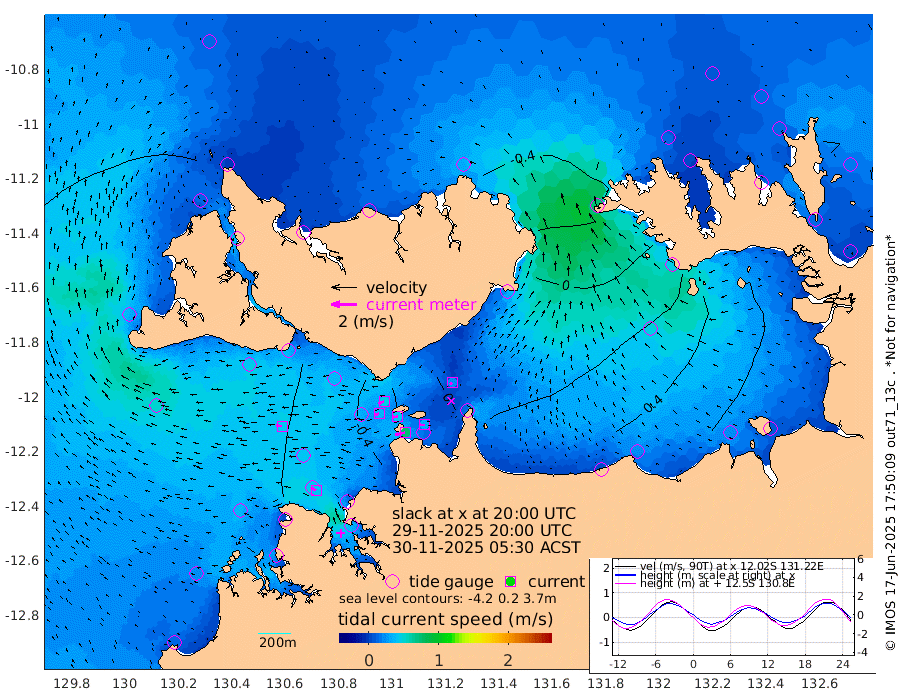 77cm/s -102T +4cm/s rms + 6cm/s 51T. Darwin_C1 52m 35cm/s -91T +4cm/s rms + 7cm/s -161T. Darwin_CW1 22m 38cm/s -106T +4cm/s rms + 8cm/s 61T. Darwin_CW2 34m 22cm/s -125T +3cm/s rms + 9cm/s 98T. Darwin_CW3 22m 41cm/s -93T +5cm/s rms + 7cm/s 88T. Darwin_C3 56m 46cm/s -116T +2cm/s rms + 9cm/s -126T. Darwin_CTbW 22m 42cm/s -88T +1cm/s rms + 1cm/s -47T. DARBGF 30m 42cm/s -60T +4cm/s rms + 3cm/s 80T. NRSDAR 19m -40cm Goodrich Bank -83cm Point Jenny -83cm Native Point -80cm Fish Reef -84cm Tapa Bay -71cm Point Fawcett (Offshore) -76cm Burge Point -86cm Munkunuwa -82cm Beagle A -82cm Parsons Bank -81cm Fenton Patches -73cm Hancox Shoal Area -79cm Nightcliff -69cm Darwin -71cm Charles Point Patches -29cm Glyde Point 11cm Chambers Bay 24cm Point Stuart -18cm Cape Hotham 7cm Christine Reef 32cm West Alligator Head 58cm East Field Island -3cm Two Hills Bay 8cm Camp Point -76cm Medina Inlet South -68cm South Barlow Point -60cm St. Asaph Bay -45cm Cape Van Dieman -46cm Snake Bay -45cm Cache Point -43cm Point Jahleel (Off) -34cm Cape Don -41cm Port Essington -51cm Smith Point - West -46cm NW Peacock Island -39cm North Of Jones Shoal -14cm Peacock Island -42cm Point David -51cm D'urville Point -41cm Copeland Island -37cm One Tree Point