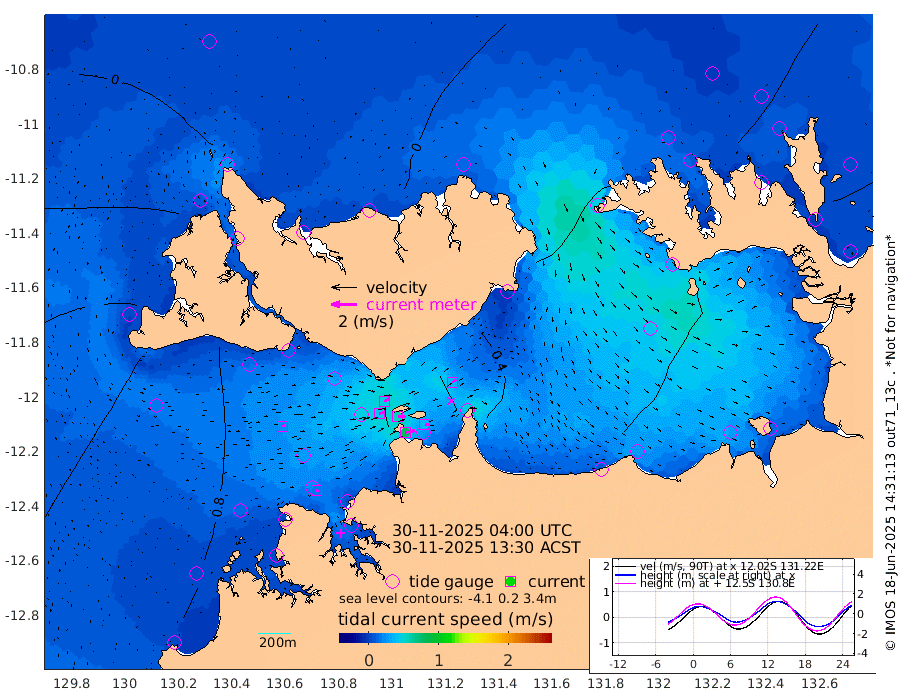 78cm/s 78T +4cm/s rms + 6cm/s 51T. Darwin_C1 52m 38cm/s 88T +4cm/s rms + 7cm/s -161T. Darwin_CW1 22m 44cm/s 73T +4cm/s rms + 8cm/s 61T. Darwin_CW2 34m 35cm/s 49T +3cm/s rms + 9cm/s 98T. Darwin_CW3 22m 57cm/s 88T +5cm/s rms + 7cm/s 88T. Darwin_C3 56m 47cm/s 64T +2cm/s rms + 9cm/s -126T. Darwin_CTbW 22m 22cm/s 88T +1cm/s rms + 1cm/s -47T. DARBGF 30m 18cm/s 112T +4cm/s rms + 3cm/s 80T. NRSDAR 19m -8cm Goodrich Bank 92cm Point Jenny 89cm Native Point 85cm Fish Reef 101cm Tapa Bay 41cm Point Fawcett (Offshore) 94cm Burge Point 86cm Munkunuwa 71cm Beagle A 101cm Parsons Bank 95cm Fenton Patches 106cm Hancox Shoal Area 108cm Nightcliff 99cm Darwin 92cm Charles Point Patches 72cm Glyde Point 64cm Chambers Bay 47cm Point Stuart 61cm Cape Hotham 57cm Christine Reef 49cm West Alligator Head 35cm East Field Island 47cm Two Hills Bay 44cm Camp Point 84cm Medina Inlet South 28cm South Barlow Point 16cm St. Asaph Bay -3cm Cape Van Dieman -5cm Snake Bay 1cm Cache Point 9cm Point Jahleel (Off) 33cm Cape Don 17cm Port Essington 24cm Smith Point - West 22cm NW Peacock Island 6cm North Of Jones Shoal 4cm Peacock Island 39cm Point David 28cm D'urville Point 43cm Copeland Island 31cm One Tree Point
