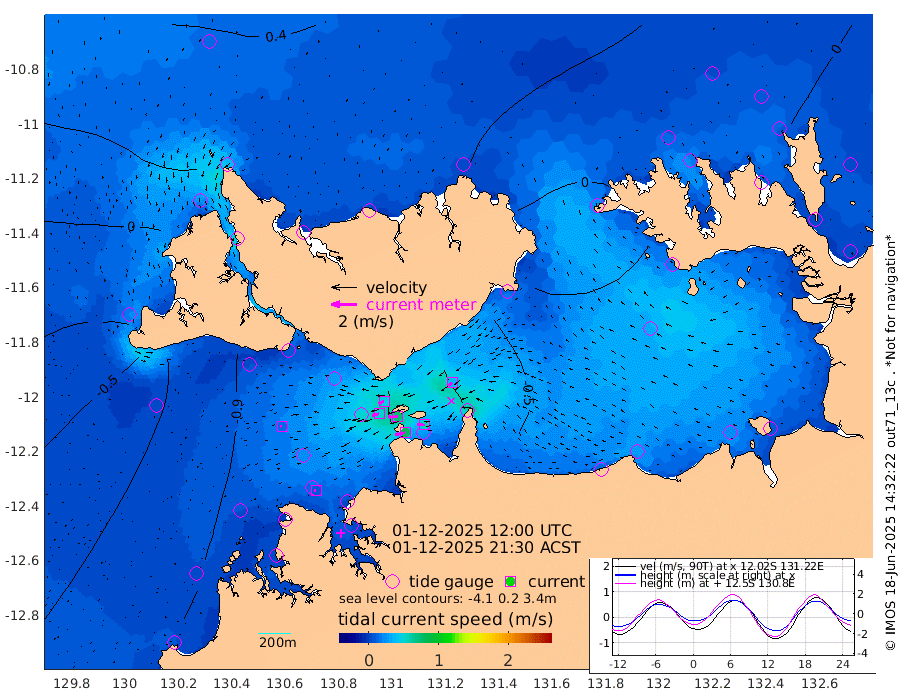 78cm/s -103T +4cm/s rms + 6cm/s 51T. Darwin_C1 52m 55cm/s -88T +4cm/s rms + 7cm/s -161T. Darwin_CW1 22m 53cm/s -108T +4cm/s rms + 8cm/s 61T. Darwin_CW2 34m 39cm/s -131T +3cm/s rms + 9cm/s 98T. Darwin_CW3 22m 77cm/s -91T +5cm/s rms + 7cm/s 88T. Darwin_C3 56m 45cm/s -115T +2cm/s rms + 9cm/s -126T. Darwin_CTbW 22m 13cm/s -101T +1cm/s rms + 1cm/s -47T. DARBGF 30m 9cm/s -89T +4cm/s rms + 3cm/s 80T. NRSDAR 19m 44cm Goodrich Bank -80cm Point Jenny -78cm Native Point -77cm Fish Reef -92cm Tapa Bay -11cm Point Fawcett (Offshore) -99cm Burge Point -87cm Munkunuwa -52cm Beagle A -101cm Parsons Bank -90cm Fenton Patches -102cm Hancox Shoal Area -107cm Nightcliff -105cm Darwin -88cm Charles Point Patches -76cm Glyde Point -68cm Chambers Bay -60cm Point Stuart -62cm Cape Hotham -62cm Christine Reef -65cm West Alligator Head -56cm East Field Island -47cm Two Hills Bay -50cm Camp Point -83cm Medina Inlet South -1cm South Barlow Point 17cm St. Asaph Bay 40cm Cape Van Dieman 40cm Snake Bay 38cm Cache Point 24cm Point Jahleel (Off) -14cm Cape Don 15cm Port Essington 15cm Smith Point - West 16cm NW Peacock Island 30cm North Of Jones Shoal 8cm Peacock Island -8cm Point David 10cm D'urville Point -12cm Copeland Island -2cm One Tree Point