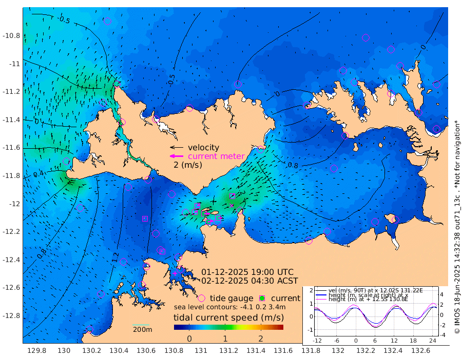 73cm/s 78T +4cm/s rms + 6cm/s 51T. Darwin_C1 52m 61cm/s 92T +4cm/s rms + 7cm/s -161T. Darwin_CW1 22m 45cm/s 72T +4cm/s rms + 8cm/s 61T. Darwin_CW2 34m 54cm/s 42T +3cm/s rms + 9cm/s 98T. Darwin_CW3 22m 80cm/s 90T +5cm/s rms + 7cm/s 88T. Darwin_C3 56m 34cm/s 66T +2cm/s rms + 9cm/s -126T. Darwin_CTbW 22m 14cm/s -67T +1cm/s rms + 1cm/s -47T. DARBGF 30m 18cm/s -40T +4cm/s rms + 3cm/s 80T. NRSDAR 19m -55cm Goodrich Bank 71cm Point Jenny 71cm Native Point 78cm Fish Reef 90cm Tapa Bay -8cm Point Fawcett (Offshore) 112cm Burge Point 79cm Munkunuwa 52cm Beagle A 107cm Parsons Bank 105cm Fenton Patches 110cm Hancox Shoal Area 119cm Nightcliff 127cm Darwin 96cm Charles Point Patches 112cm Glyde Point 114cm Chambers Bay 122cm Point Stuart 102cm Cape Hotham 105cm Christine Reef 135cm West Alligator Head 143cm East Field Island 90cm Two Hills Bay 96cm Camp Point 87cm Medina Inlet South -13cm South Barlow Point -35cm St. Asaph Bay -53cm Cape Van Dieman -46cm Snake Bay -51cm Cache Point -29cm Point Jahleel (Off) 19cm Cape Don -23cm Port Essington -27cm Smith Point - West -25cm NW Peacock Island -41cm North Of Jones Shoal -12cm Peacock Island 7cm Point David -21cm D'urville Point 10cm Copeland Island 1cm One Tree Point