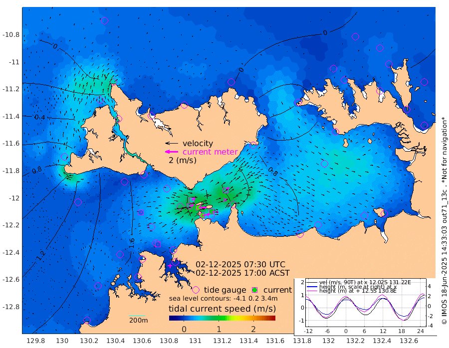 120cm/s 78T +4cm/s rms + 6cm/s 51T. Darwin_C1 52m 102cm/s 92T +4cm/s rms + 7cm/s -161T. Darwin_CW1 22m 74cm/s 73T +4cm/s rms + 8cm/s 61T. Darwin_CW2 34m 71cm/s 43T +3cm/s rms + 9cm/s 98T. Darwin_CW3 22m 122cm/s 90T +5cm/s rms + 7cm/s 88T. Darwin_C3 56m 60cm/s 66T +2cm/s rms + 9cm/s -126T. Darwin_CTbW 22m 15cm/s 65T +1cm/s rms + 1cm/s -47T. DARBGF 30m 8cm/s 77T +4cm/s rms + 3cm/s 80T. NRSDAR 19m -13cm Goodrich Bank 157cm Point Jenny 153cm Native Point 158cm Fish Reef 176cm Tapa Bay 68cm Point Fawcett (Offshore) 187cm Burge Point 150cm Munkunuwa 133cm Beagle A 175cm Parsons Bank 185cm Fenton Patches 188cm Hancox Shoal Area 200cm Nightcliff 197cm Darwin 179cm Charles Point Patches 158cm Glyde Point 151cm Chambers Bay 139cm Point Stuart 140cm Cape Hotham 143cm Christine Reef 151cm West Alligator Head 149cm East Field Island 117cm Two Hills Bay 122cm Camp Point 160cm Medina Inlet South 44cm South Barlow Point 27cm St. Asaph Bay -12cm Cape Van Dieman -13cm Snake Bay -3cm Cache Point 14cm Point Jahleel (Off) 57cm Cape Don 14cm Port Essington 19cm Smith Point - West 14cm NW Peacock Island 1cm North Of Jones Shoal 1cm Peacock Island 27cm Point David 18cm D'urville Point 31cm Copeland Island 24cm One Tree Point