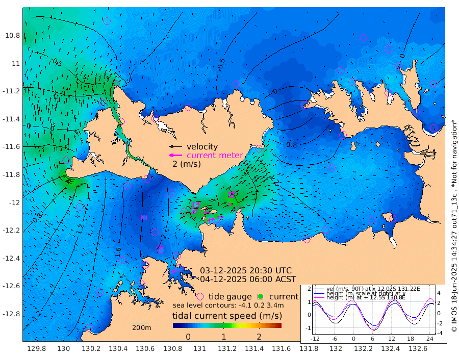 119cm/s 78T +4cm/s rms + 6cm/s 51T. Darwin_C1 52m 101cm/s 92T +4cm/s rms + 7cm/s -161T. Darwin_CW1 22m 59cm/s 71T +4cm/s rms + 8cm/s 61T. Darwin_CW2 34m 81cm/s 42T +3cm/s rms + 9cm/s 98T. Darwin_CW3 22m 104cm/s 90T +5cm/s rms + 7cm/s 88T. Darwin_C3 56m 54cm/s 65T +2cm/s rms + 9cm/s -126T. Darwin_CTbW 22m 18cm/s -70T +1cm/s rms + 1cm/s -47T. DARBGF 30m 24cm/s -41T +4cm/s rms + 3cm/s 80T. NRSDAR 19m -73cm Goodrich Bank 80cm Point Jenny 81cm Native Point 94cm Fish Reef 109cm Tapa Bay -18cm Point Fawcett (Offshore) 133cm Burge Point 98cm Munkunuwa 54cm Beagle A 138cm Parsons Bank 124cm Fenton Patches 140cm Hancox Shoal Area 140cm Nightcliff 159cm Darwin 120cm Charles Point Patches 136cm Glyde Point 130cm Chambers Bay 145cm Point Stuart 125cm Cape Hotham 119cm Christine Reef 159cm West Alligator Head 164cm East Field Island 108cm Two Hills Bay 111cm Camp Point 104cm Medina Inlet South -20cm South Barlow Point -52cm St. Asaph Bay -71cm Cape Van Dieman -61cm Snake Bay -68cm Cache Point -39cm Point Jahleel (Off) 22cm Cape Don -24cm Port Essington -28cm Smith Point - West -23cm NW Peacock Island -52cm North Of Jones Shoal -14cm Peacock Island 25cm Point David -17cm D'urville Point 30cm Copeland Island 13cm One Tree Point