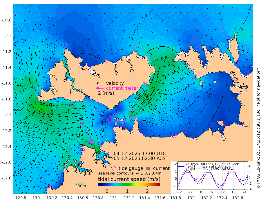 20cm/s -100T +4cm/s rms + 6cm/s 51T. Darwin_C1 52m 41cm/s -90T +4cm/s rms + 7cm/s -161T. Darwin_CW1 22m 2cm/s 92T +4cm/s rms + 8cm/s 61T. Darwin_CW2 34m 47cm/s -139T +3cm/s rms + 9cm/s 98T. Darwin_CW3 22m 25cm/s -89T +5cm/s rms + 7cm/s 88T. Darwin_C3 56m 12cm/s 57T +2cm/s rms + 9cm/s -126T. Darwin_CTbW 22m 52cm/s 96T +1cm/s rms + 1cm/s -47T. DARBGF 30m 54cm/s 129T +4cm/s rms + 3cm/s 80T. NRSDAR 19m 107cm Goodrich Bank 58cm Point Jenny 62cm Native Point 59cm Fish Reef 47cm Tapa Bay 103cm Point Fawcett (Offshore) 38cm Burge Point 47cm Munkunuwa 78cm Beagle A 32cm Parsons Bank 42cm Fenton Patches 14cm Hancox Shoal Area 18cm Nightcliff 24cm Darwin 49cm Charles Point Patches -12cm Glyde Point -77cm Chambers Bay -86cm Point Stuart -28cm Cape Hotham -69cm Christine Reef -108cm West Alligator Head -133cm East Field Island -37cm Two Hills Bay -36cm Camp Point 51cm Medina Inlet South 109cm South Barlow Point 108cm St. Asaph Bay 113cm Cape Van Dieman 116cm Snake Bay 108cm Cache Point 87cm Point Jahleel (Off) 54cm Cape Don 91cm Port Essington 91cm Smith Point - West 91cm NW Peacock Island 94cm North Of Jones Shoal 33cm Peacock Island 74cm Point David 93cm D'urville Point 67cm Copeland Island 76cm One Tree Point