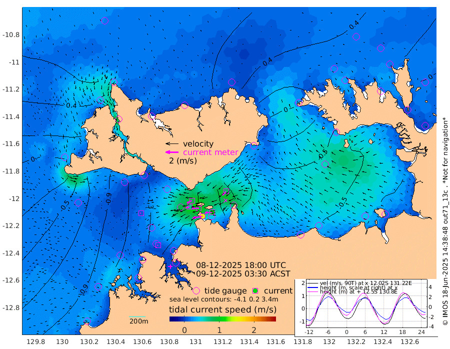 159cm/s -101T +4cm/s rms + 6cm/s 51T. Darwin_C1 52m 114cm/s -91T +4cm/s rms + 7cm/s -161T. Darwin_CW1 22m 65cm/s -107T +4cm/s rms + 8cm/s 61T. Darwin_CW2 34m 81cm/s -135T +3cm/s rms + 9cm/s 98T. Darwin_CW3 22m 99cm/s -91T +5cm/s rms + 7cm/s 88T. Darwin_C3 56m 87cm/s -116T +2cm/s rms + 9cm/s -126T. Darwin_CTbW 22m 9cm/s -119T +1cm/s rms + 1cm/s -47T. DARBGF 30m 10cm/s -117T +4cm/s rms + 3cm/s 80T. NRSDAR 19m 72cm Goodrich Bank -81cm Point Jenny -78cm Native Point -98cm Fish Reef -103cm Tapa Bay 4cm Point Fawcett (Offshore) -117cm Burge Point -107cm Munkunuwa -58cm Beagle A -129cm Parsons Bank -114cm Fenton Patches -126cm Hancox Shoal Area -127cm Nightcliff -135cm Darwin -102cm Charles Point Patches -105cm Glyde Point -99cm Chambers Bay -104cm Point Stuart -97cm Cape Hotham -86cm Christine Reef -118cm West Alligator Head -111cm East Field Island -81cm Two Hills Bay -63cm Camp Point -100cm Medina Inlet South 13cm South Barlow Point 39cm St. Asaph Bay 69cm Cape Van Dieman 65cm Snake Bay 64cm Cache Point 39cm Point Jahleel (Off) -9cm Cape Don 31cm Port Essington 26cm Smith Point - West 30cm NW Peacock Island 52cm North Of Jones Shoal 16cm Peacock Island 6cm Point David 23cm D'urville Point 0cm Copeland Island 12cm One Tree Point