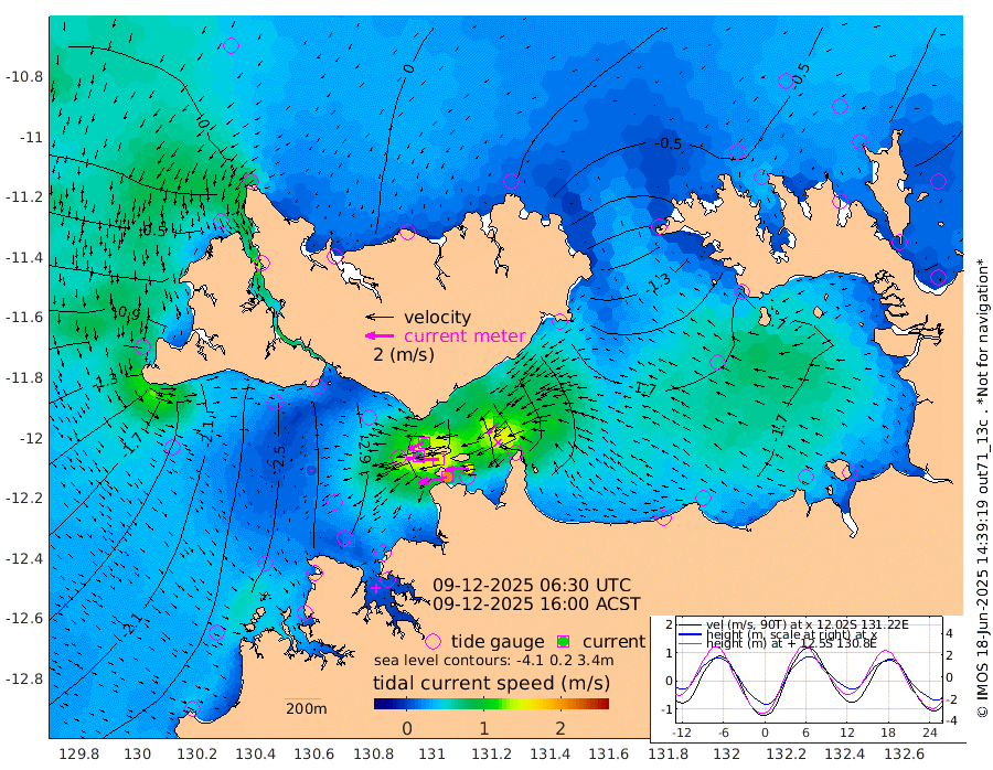 206cm/s -101T +4cm/s rms + 6cm/s 51T. Darwin_C1 52m 155cm/s -91T +4cm/s rms + 7cm/s -161T. Darwin_CW1 22m 84cm/s -105T +4cm/s rms + 8cm/s 61T. Darwin_CW2 34m 117cm/s -136T +3cm/s rms + 9cm/s 98T. Darwin_CW3 22m 149cm/s -90T +5cm/s rms + 7cm/s 88T. Darwin_C3 56m 112cm/s -116T +2cm/s rms + 9cm/s -126T. Darwin_CTbW 22m 9cm/s 167T +1cm/s rms + 1cm/s -47T. DARBGF 30m 18cm/s 157T +4cm/s rms + 3cm/s 80T. NRSDAR 19m 7cm Goodrich Bank -179cm Point Jenny -176cm Native Point -195cm Fish Reef -209cm Tapa Bay -83cm Point Fawcett (Offshore) -232cm Burge Point -184cm Munkunuwa -140cm Beagle A -232cm Parsons Bank -210cm Fenton Patches -233cm Hancox Shoal Area -232cm Nightcliff -265cm Darwin -234cm Charles Point Patches -221cm Glyde Point -213cm Chambers Bay -223cm Point Stuart -205cm Cape Hotham -194cm Christine Reef -239cm West Alligator Head -237cm East Field Island -189cm Two Hills Bay -182cm Camp Point -207cm Medina Inlet South -60cm South Barlow Point -28cm St. Asaph Bay 4cm Cape Van Dieman -7cm Snake Bay -8cm Cache Point -31cm Point Jahleel (Off) -103cm Cape Don -50cm Port Essington -43cm Smith Point - West -44cm NW Peacock Island -24cm North Of Jones Shoal -11cm Peacock Island -84cm Point David -50cm D'urville Point -86cm Copeland Island -82cm One Tree Point