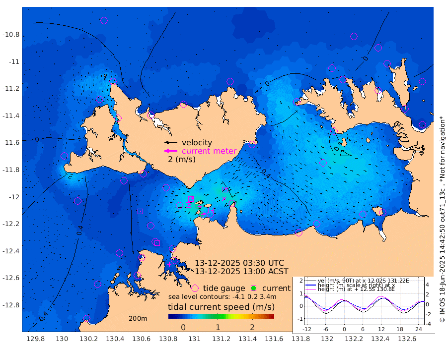 68cm/s 80T +4cm/s rms + 6cm/s 51T. Darwin_C1 52m 36cm/s 90T +4cm/s rms + 7cm/s -161T. Darwin_CW1 22m 40cm/s 72T +4cm/s rms + 8cm/s 61T. Darwin_CW2 34m 34cm/s 49T +3cm/s rms + 9cm/s 98T. Darwin_CW3 22m 60cm/s 88T +5cm/s rms + 7cm/s 88T. Darwin_C3 56m 36cm/s 65T +2cm/s rms + 9cm/s -126T. Darwin_CTbW 22m 8cm/s 76T +1cm/s rms + 1cm/s -47T. DARBGF 30m 3cm/s 23T +4cm/s rms + 3cm/s 80T. NRSDAR 19m -33cm Goodrich Bank 51cm Point Jenny 45cm Native Point 61cm Fish Reef 61cm Tapa Bay 18cm Point Fawcett (Offshore) 59cm Burge Point 56cm Munkunuwa 28cm Beagle A 72cm Parsons Bank 53cm Fenton Patches 74cm Hancox Shoal Area 73cm Nightcliff 76cm Darwin 62cm Charles Point Patches 65cm Glyde Point 78cm Chambers Bay 78cm Point Stuart 69cm Cape Hotham 57cm Christine Reef 85cm West Alligator Head 78cm East Field Island 65cm Two Hills Bay 46cm Camp Point 58cm Medina Inlet South -2cm South Barlow Point -12cm St. Asaph Bay -29cm Cape Van Dieman -27cm Snake Bay -21cm Cache Point -8cm Point Jahleel (Off) 24cm Cape Don 3cm Port Essington 4cm Smith Point - West 3cm NW Peacock Island -3cm North Of Jones Shoal 1cm Peacock Island 26cm Point David 8cm D'urville Point 31cm Copeland Island 25cm One Tree Point
